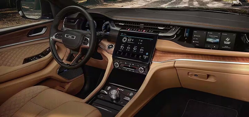 Stepping inside, the difference between the Jeep Grand Cherokee vs Ford Explorer is significant. To demonstrate, the new 2025 Jeep Grand Cherokee comes available with five interior trims, and authentic wood grain. The new 2025 Ford Explore on sale, however, comes available with three interior trims and does not include a wood grain surface.