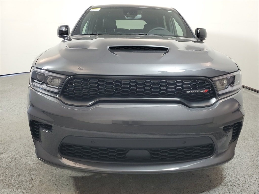 This Durango is well equipped with Blacktop Package (Black Roof Rails, Gloss Black Badges, Integrated Roof Rail Crossbars, and Satin Black Dodge Tail Lamp Badge), Quick Order Package 22T GT Plus (115V Auxiliary Power Outlet, 7 and 4 Pin Wiring Harness, Adaptive Cruise Control with Stop, Auto High Beam Headlamp Control, Auto-Dimming Exterior Driver Mirror, Blind Spot with Trailer Detection, Class IV Receiver Hitch, Dual Remote USB Port - Charge Only, Exterior Mirrors with Heating Element, Exterior Mirrors with Memory, Exterior Mirrors with Supplemental Signals, Floor Console with Leather Armrest, Full Speed Forward Collision Warning Plus, Gloss Black Exterior Mirrors, Heated Second Row Seats, Leather Trimmed Bucket Seats, Leather Wrapped Door Panels, LED Auxiliary Low Beam and Turn Signal, Power 6x9 Multi-Function Foldaway Mirrors, Power 8-Way Driver Memory 8-Way Passenger Seats, Power Driver/Passenger 4-Way Lumbar Adjust, Power Sunroof, Power Tilt and Telescopic Steering Column, Radio/Driver Seat/Mirrors Memory, Red Accent Stitching, Trailer Brake Control, and Ventilated Front Seats), AWD, 3.09 Rear Axle Ratio, 3rd row seats: split-bench, 4-Wheel Disc Brakes, 9 Speakers, ABS brakes, Air Conditioning, Alloy wheels, AM/FM radio: SiriusXM w/360L, Apple CarPlay/Android Auto, Auto-dimming Rear-View mirror, Auto-leveling suspension, Automatic temperature control, Brake assist, Bumpers: body-color, Cloth Bucket Seats with Shift Insert, Compass, Delay-off headlights, Driver door bin, Driver vanity mirror, Dual front impact airbags, Dual front side impact airbags, Electronic Stability Control, Emergency communication system: Dodge Connect, Four wheel independent suspension, Front anti-roll bar, Front Bucket Seats, Front Center Armrest w/Storage, Front dual zone A/C, Front reading lights, Fully automatic headlights, Garage door transmitter, Heated door mirrors, Heated front seats, Heated steering wheel, Illuminated entry, Knee airbag, Leather steering wheel, Low tire pressure warning, MyFlexCare Service Plan, Navigation System, Occupant sensing airbag, Outside temperature display, Overhead airbag, Overhead console, Panic alarm, ParkView Rear Back-Up Camera, Passenger door bin, Passenger vanity mirror, Power door mirrors, Power driver seat, Power Liftgate, Power steering, Power windows, Radio data system, Radio: Uconnect 5 Nav with 10.1" Display, Rain sensing wipers, Rear air conditioning, Rear anti-roll bar, Rear Load Leveling Suspension, Rear reading lights, Rear seat center armrest, Rear window defroster, Rear window wiper, Remote keyless entry, Security system, Speed control, Speed-sensing steering, Speed-Sensitive Wipers, Split folding rear seat, Spoiler, Sport steering wheel, Steering wheel mounted audio controls, Tachometer, Telescoping steering wheel, Tilt steering wheel, Traction control, Trip computer, Variably intermittent wipers, Voltmeter, Wheels: 20" x 8" Black Noise Split 5-Spoke, and Wheels: 20" x 8" Satin Carbon Split 5-Spoke.
