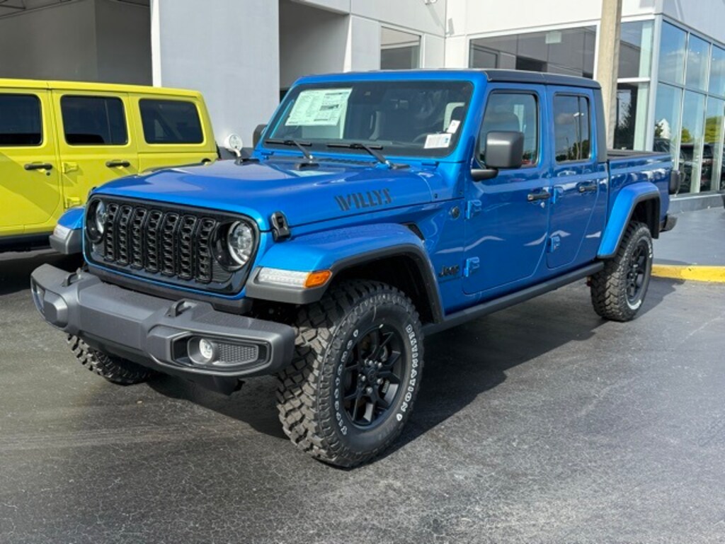 New Price! Hydro Blue Pearlcoat 2025 Jeep Gladiator 4D Crew Cab Willys 4WD 8-Speed Automatic 3.6L V6 24V VVT