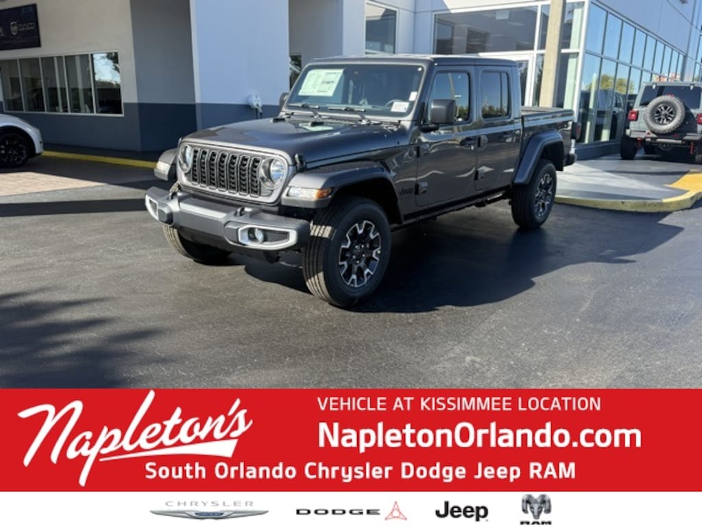 This Gladiator is well equipped with Convenience Group (Corning Gorilla Glass, Daytime Running Lamp System, Emergency/Assistance Call, Front Door Locks 2-Door Passive Entry, Heated Front Seats, Heated Steering Wheel, Remote Start System, and Universal Garage Door Opener), Max Tow Package w/4.10 Axle Ratio (110 MPH Vehicle Max Speed Calibration, Anti-Spin Differential Rear Axle, Black Molded-In-Color Fender Flares (2-Piece), Class IV Receiver Hitch, Conventional Differential Front Axle, Dana M210 Wide Front Axle, Dana M220 Wide Rear Axle, and Heavy-Duty Engine Cooling), Premium Package (Body Color 3-Piece Hard Top, Freedom Panel Storage Bag, No Soft Top, Premium McKinley Trimmed Seats, Rear Sliding Window, Rear Window Defroster, and Wheels: 18" x 7.5" Machined/Painted Gray), Quick Order Package 24S Sport S (Advanced Brake Assist, Automatic Headlamps, Deep Tint Sunscreen Windows, Enhanced Adaptive Cruise Control, Full Speed Forward Collision Warning Plus, Normal Duty Plus Suspension, Power Heated Mirrors, Premium Wrapped Steering Wheel, Security Alarm, Sun Visors w/Illuminated Vanity Mirrors, and Wheels: 17" x 7.5" Gray), 12.3" Touchscreen Display, 4-Wheel Disc Brakes, 4G LTE Wi-Fi Hot Spot, 8 Speakers, ABS brakes, Air Conditioning, Alexa Built-In, AM/FM radio: SiriusXM, Apple CarPlay, Apple CarPlay/Android Auto, Brake assist, Cloth Low-Back Bucket Seats, Compass, Connectivity - US/Canada, Delay-off headlights, Driver door bin, Driver vanity mirror, Dual front impact airbags, Dual front side impact airbags, Electronic Stability Control, Front anti-roll bar, Front Bucket Seats, Front Center Armrest w/Storage, Front fog lights, Front reading lights, Google Android Auto, Illuminated entry, Integrated roll-over protection, Low tire pressure warning, Manufacturer's Statement of Origin, MOPAR Spray In Bedliner, Normal Duty Suspension, Occupant sensing airbag, Outside temperature display, Overhead airbag, Panic alarm, ParkView Rear Back-Up Camera, Passenger door bin, Passenger vanity mirror, Power steering, Power windows, Radio data system, Radio: Uconnect 5 w/12.3" Display, Rear anti-roll bar, Rear reading lights, Remote keyless entry, Speed control, Split folding rear seat, Steering wheel mounted audio controls, Tachometer, Telescoping steering wheel, Tilt steering wheel, Traction control, Trip computer, USB Host Flip, Variably intermittent wipers, Voltmeter, and Wheels: 17" x 7.5" Black Steel Styled. Not all customers qualify for all rebates. See dealer for details. Price includes: $1000 - 2025 South BC Regional Bonus Cash SCSN. Exp. 11/03/2025 $2250 - 2025 National Bonus Cash . Exp. 11/03/2025