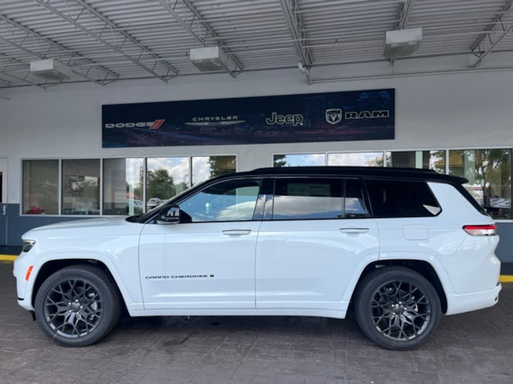 This Grand Cherokee L is well equipped with Advanced Protech Group IV (Heads-Up Display, Interior Rear Facing Camera, Night Vision/Pedestrian-Animal Detection, Rearview Autodim Digital Display Mirror, and Windshield Wiper De-Icer), High Altitude Package (Gloss Black Exterior Accents, Neutral Gray Exterior Accents, Painted Door Cladding, and Wheels: 21" x 9" Black Painted Aluminum), Quick Order Package 23U Summit Reserve (19 Speakers High Performance Audio, 950 Watt Amplifier, Active Noise Control System, Deluxe Headliner, Front Passenger Interactive Display, Palermo Leather Door Trim, Palermo Leather Seats, Summit, Summit Badge, Ventilated Rear Seats, and Wheels: 21" x 9.0" Machined Face/Painted Aluminum), Two Tone Paint Group, 10 Speakers, 3.45 Rear Axle Ratio, 3rd row seats: split-bench, 4-Wheel Disc Brakes, ABS brakes, Adaptive suspension, Air Conditioning, Alloy wheels, AM/FM radio: SiriusXM with 360L, Anti-whiplash front head restraints, Audio memory, Auto High-beam Headlights, Auto-dimming door mirrors, Auto-dimming Rear-View mirror, Auto-leveling suspension, Automatic temperature control, Aux Battery, Brake assist, Bumpers: body-color, Compass, Delay-off headlights, Driver door bin, Driver vanity mirror, Dual front impact airbags, Dual front side impact airbags, Electronic Stability Control, Emergency communication system, Four wheel independent suspension, Front anti-roll bar, Front Bucket Seats, Front Center Armrest w/Storage, Front dual zone A/C, Front fog lights, Front reading lights, Fully automatic headlights, Garage door transmitter, Genuine wood dashboard insert, Genuine wood door panel insert, Hands-Free Active Driving Assist System, Heated door mirrors, Heated front seats, Heated rear seats, Heated steering wheel, Illuminated entry, Knee airbag, Leather steering wheel, Low tire pressure warning, Memory seat, Model Year Tracking, Nappa Leather Seats, Navigation System, Normal Duty Suspension, Occupant sensing airbag, Outside temperature display, Overhead airbag, Overhead console, Panic alarm, Passenger door bin, Passenger vanity mirror, Power door mirrors, Power driver seat, Power Fold Seatbacks, Power Liftgate, Power moonroof, Power passenger seat, Power steering, Power windows, Radio data system, Radio: Uconnect 5 Nav w/10.1" Display, Rain sensing wipers, Rear air conditioning, Rear anti-roll bar, Rear dual zone A/C, Rear reading lights, Rear seat center armrest, Rear window defroster, Rear window wiper, Reclining 3rd row seat, Remote keyless entry, Security system, Speed control, Speed-Sensitive Wipers, Split folding rear seat, Spoiler, Steering wheel memory, Steering wheel mounted audio controls, Tachometer, Telescoping steering wheel, Tilt steering wheel, Traction control, Trip computer, Turn signal indicator mirrors, Variably intermittent wipers, Ventilated front seats, Voltmeter, and Wheels: 20" x 8.5" Fully Painted Aluminum Silver. Not all customers qualify for all rebates. See dealer for details. Price includes: $2500 - 2025 National Retail Bonus Cash . Exp. 09/30/2025