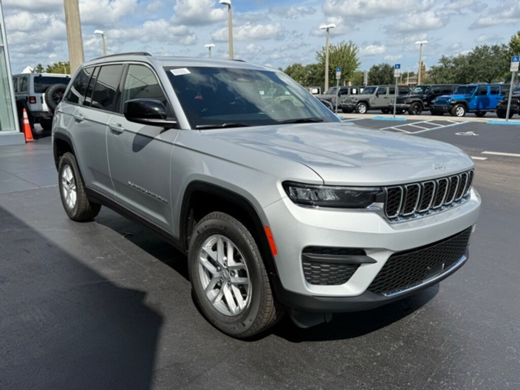 This Grand Cherokee is well equipped with Luxury Tech Group I (115V Auxiliary Power Outlet, Heated Front Seats, Heated Steering Wheel, Power Liftgate, Rain Sensitive Windshield Wipers, Remote Start System, Satellite Radio, Secondary Active Grille Shutters, Selectable Tire Fill Alert, and Wireless Charging Pad), Quick Order Package 23D Laredo X (Laredo X, Power Sunroof, and Wheels: 18" x 8" Fully Painted Aluminum), 4-Wheel Disc Brakes, 6 Speakers, ABS brakes, Air Conditioning, Alloy wheels, AM/FM radio: SiriusXM, Anti-whiplash front head restraints, Automatic temperature control, Brake assist, Bumpers: body-color, Cloth Seats, Compass, Delay-off headlights, Driver door bin, Driver vanity mirror, Dual front impact airbags, Dual front side impact airbags, Electronic Stability Control, Emergency communication system, Four wheel independent suspension, Front anti-roll bar, Front Bucket Seats, Front Center Armrest w/Storage, Front dual zone A/C, Front reading lights, Fully automatic headlights, Heated door mirrors, Illuminated entry, Knee airbag, Low tire pressure warning, Model Year Tracking, Normal Duty Suspension, Occupant sensing airbag, Outside temperature display, Overhead airbag, Overhead console, Panic alarm, ParkView Rear Back-Up Camera, Passenger door bin, Passenger vanity mirror, Power door mirrors, Power driver seat, Power steering, Power windows, Radio data system, Radio: Uconnect 5 w/8.4" Display, Rear anti-roll bar, Rear reading lights, Rear window defroster, Rear window wiper, Remote keyless entry, Security system, Speed control, Speed-Sensitive Wipers, Split folding rear seat, Spoiler, Steering wheel mounted audio controls, Tachometer, Telescoping steering wheel, Tilt steering wheel, Traction control, Trip computer, Variably intermittent wipers, Voltmeter, and Wheels: 17" x 6.5" Fully Painted Aluminum. Not all customers qualify for all rebates. See dealer for details. Price includes: $1750 - 2025 National Retail Bonus Cash . Exp. 11/03/2025 $500 - 2025 National Jeep Monopoly Money Bonus Cash . Exp. 11/03/2025