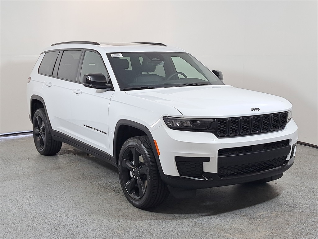 This Grand Cherokee L is well equipped with Quick Order Package 23M Altitude X (115V Auxiliary Power Outlet, 3rd Row Charge-Only USB Ports, Altitude X, Black Headliner, Capri Leatherette/Suede Seats, Delete Laredo Badge, Gloss Black Exterior Accents, Heated Front Seats, Heated Steering Wheel, Power Liftgate, Power Sunroof, Rain Sensitive Windshield Wipers, Remote Start System, Selectable Tire Fill Alert, Wheels: 18" x 8.0" Fully Painted Aluminum 1, and Wireless Charging Pad), 3.45 Rear Axle Ratio, 3rd row seats: split-bench, 4-Wheel Disc Brakes, 6 Speakers, ABS brakes, Air Conditioning, Alloy wheels, AM/FM radio: SiriusXM, Anti-whiplash front head restraints, Automatic temperature control, Brake assist, Bumpers: body-color, Cloth Seats, Compass, Delay-off headlights, Driver door bin, Driver vanity mirror, Dual front impact airbags, Dual front side impact airbags, Electronic Stability Control, Emergency communication system, Four wheel independent suspension, Front anti-roll bar, Front Bucket Seats, Front Center Armrest w/Storage, Front dual zone A/C, Front reading lights, Fully automatic headlights, Heated door mirrors, Illuminated entry, Knee airbag, Low tire pressure warning, Manual Fold Seatbacks, Model Year Tracking, Normal Duty Suspension, Occupant sensing airbag, Outside temperature display, Overhead airbag, Overhead console, Panic alarm, ParkView Rear Back-Up Camera, Passenger door bin, Passenger vanity mirror, Power door mirrors, Power driver seat, Power steering, Power windows, Radio data system, Radio: Uconnect 5 w/8.4" Display, Rear air conditioning, Rear anti-roll bar, Rear reading lights, Rear window defroster, Rear window wiper, Reclining 3rd row seat, Remote keyless entry, Security system, Speed control, Speed-Sensitive Wipers, Split folding rear seat, Spoiler, Steering wheel mounted audio controls, Tachometer, Telescoping steering wheel, Tilt steering wheel, Traction control, Trip computer, Variably intermittent wipers, Voltmeter, Wheels: 18" x 8.0" Fully Painted Aluminum, and Wheels: 20" x 8.5" Gloss Black Painted Aluminum. Some customers may not qualify for all rebates listed, see dealer for details. Price includes: $2000 - 2025 National Retail Bonus Cash . Exp. 11/03/2025 $500 - 2025 National Jeep Monopoly Money Bonus Cash . Exp. 11/03/2025