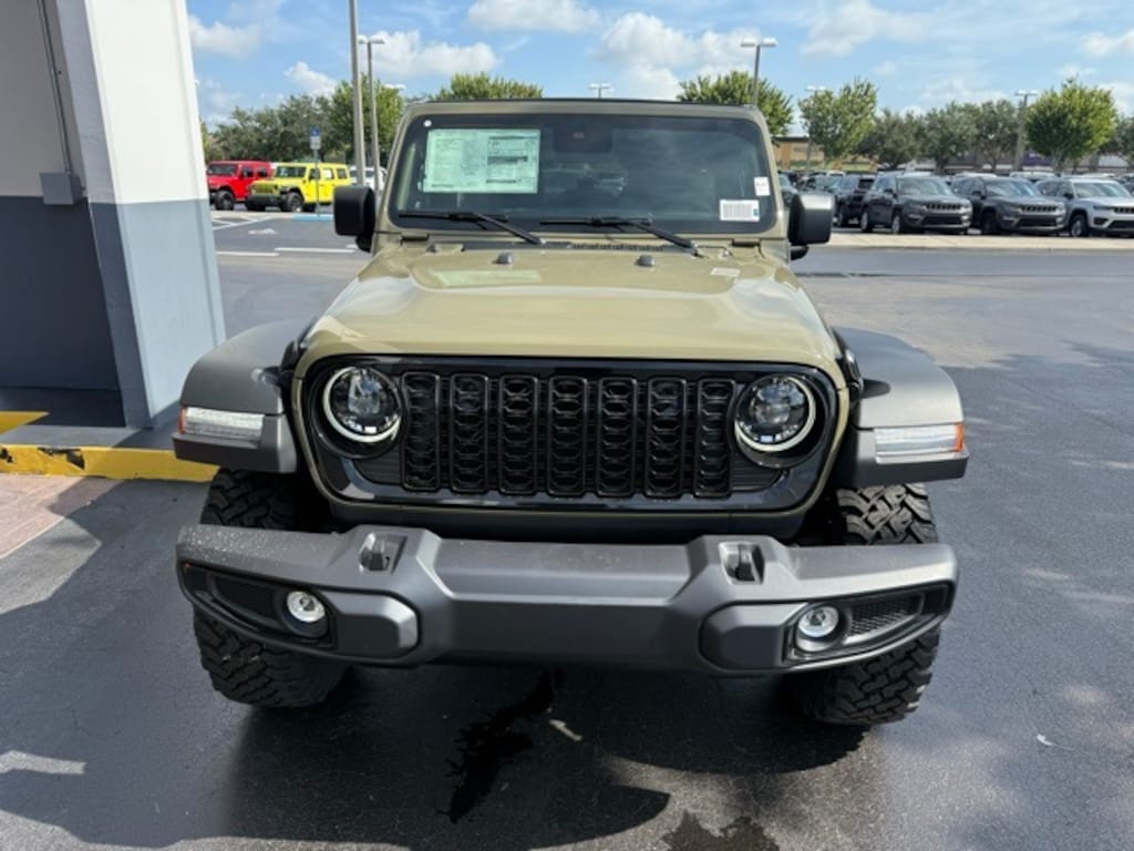 This Wrangler is well equipped with Convenience Group (2-Door Passive Entry, Front Door Locks, Air Conditioning w/Auto Temperature Control, Air Filtering, Cluster 7.0" TFT Color Display, Emergency/Assistance Call, Heated Front Seats, Heated Steering Wheel, Remote Start System, and Universal Garage Door Opener), Quick Order Package 24W Willys (4-Wheel Drive Swing Gate Decal, 7 & 4 Pin Wiring Harness, 97 MPH Vehicle Max Speed Calibration, Advanced Brake Assist, Automatic Headlamps, Auxiliary Switches, Black Grille, Class II Receiver Hitch, Conventional Differential Front Axle, Corning Gorilla Glass, Dana M210 Wide HD Tube Front Axle, Dana M220 Wide Rear Axle, Daytime Running Lamps LED Accents, Deep Tint Sunscreen Windows, E-Locker Rear Axle, Enhanced Adaptive Cruise Control, Front LED Fog Lamps, Full Speed Forward Collision Warning Plus, Injection Molded Black Rear Bumper, LED Premium Reflector Headlamps, Mold In Color Bumper w/Gloss Black, Molded in Color Rubicon Highline Flare, MOPAR All-Weather Floor Mats, Off-Road Plus Mode, Power Heated Mirrors, Premium Wrapped Steering Wheel, Security Alarm, Sun Visors w/Illuminated Vanity Mirrors, Wheels: 17" x 7.5" Painted Black, Willy's Suspension, and Willys Hood Decal), 110 MPH Vehicle Max Speed Calibration, 4-Wheel Disc Brakes, 8 Speakers, ABS brakes, Air Conditioning, Alpine Premium Audio System, AM/FM radio: SiriusXM, Apple CarPlay/Android Auto, Aux Battery, Brake assist, Cloth Low-Back Bucket Seats, Compass, Delay-off headlights, Driver door bin, Driver vanity mirror, Dual front impact airbags, Dual front side impact airbags, Electronic Stability Control, Front anti-roll bar, Front Bucket Seats, Front Center Armrest w/Storage, Front fog lights, Front reading lights, Illuminated entry, Integrated roll-over protection, Low tire pressure warning, Non-Lock Fuel Cap w/o Discriminator, Normal Duty Suspension, Occupant sensing airbag, Outside temperature display, Overhead airbag, Panic alarm, ParkView Rear Back-Up Camera, Passenger door bin, Passenger vanity mirror, Power steering, Power Top Quarter Window Storage Bag, Power windows, Radio data system, Radio: Uconnect 5 w/12.3" Display, Rear anti-roll bar, Rear reading lights, Rear Window Defroster, Rear Window Wiper/Washer, Remote keyless entry, Removable Rear Quarter Windows, Sky 1-Touch Power Top, Speed control, Split folding rear seat, Steering wheel mounted audio controls, Stop-Start Dual Battery System, Tachometer, Telescoping steering wheel, Tilt steering wheel, Traction control, Trip computer, Variably intermittent wipers, and Wheels: 17" x 7.5" Black Steel Styled. Not all customers qualify for all rebates. See dealer for details. Price includes: $2500 - 2025 National Retail Bonus Cash . Exp. 11/03/2025