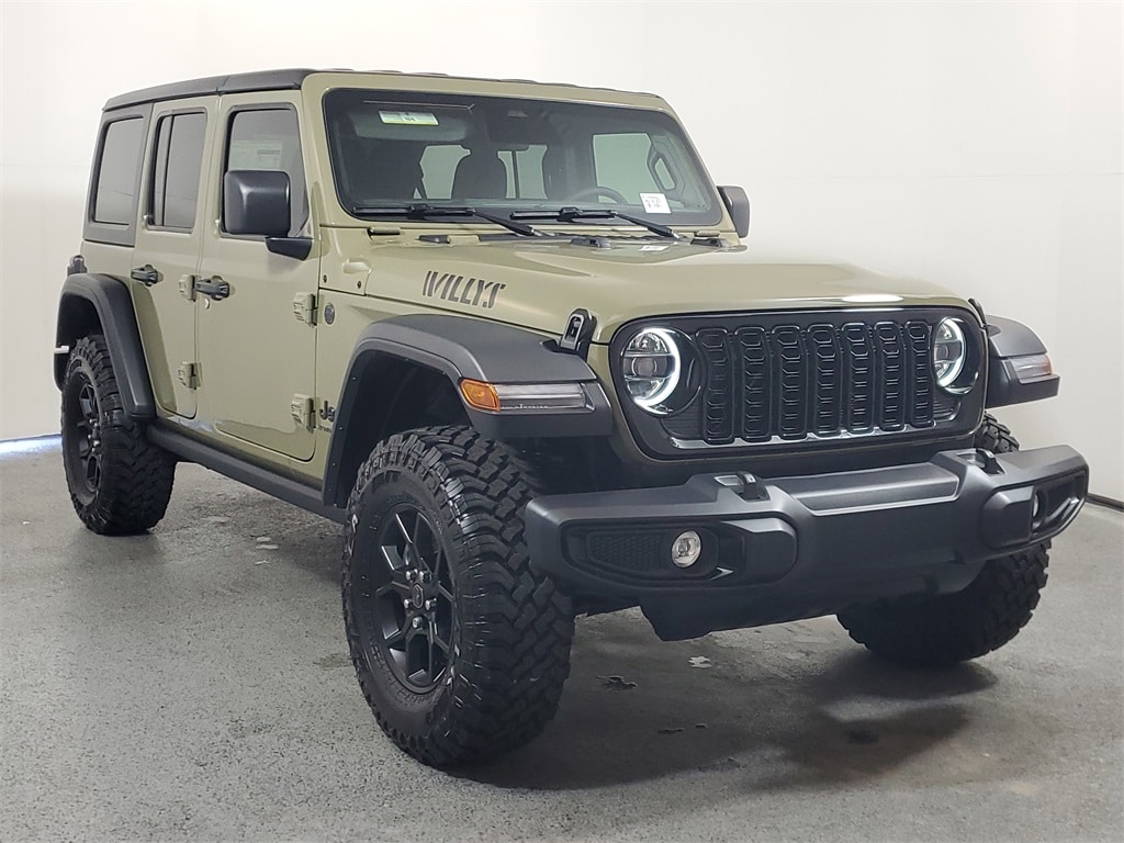This Wrangler is well equipped with Convenience Group (2-Door Passive Entry, Front Door Locks, Air Conditioning with Auto Temp Control, Air Filtering, Cluster 7.0" TFT Color Display, Emergency/Assistance Call, Heated Front Seats, Heated Steering Wheel, and Universal Garage Door Opener), Quick Order Package 24W Willys (4-Wheel Drive Swing Gate Decal, 7 and 4 Pin Wiring Harness, Advanced Brake Assist, Automatic Headlamps, Auxiliary Switches, Black Grille, Class II Receiver Hitch, Conventional Differential Front Axle, Corning Gorilla Glass, Dana M210 Wide HD Tube Front Axle, Dana M220 Wide Rear Axle, Daytime Running Lamps LED Accents, Deep Tint Sunscreen Windows, E-Locker Rear Axle, Enhanced Adaptive Cruise Control, Front LED Fog Lamps, Full Speed Forward Collision Warning Plus, Injection Molded Black Rear Bumper, LED Premium Reflector Headlamps, Mold in Color Bumper with Gloss Black, Molded in Color Rubicon Highline Flare, MOPAR All-Weather Floor Mats, Off-Road Plus Mode, Power Heated Mirrors, Premium Wrapped Steering Wheel, Security Alarm, Sun Visors with Illuminated Vanity Mirrors, Wheels: 17" x 7.5" Painted Black, Willy's Suspension, and Willys Hood Decal), Safety Group (Auto High Beam Headlamp Control, Blind Spot and Cross Path Detection, LED Taillamps, and ParkSense Rear Park Assist System), 12.3" Touchscreen Display, 4-Wheel Disc Brakes, 4G LTE Wi-Fi Hot Spot, 8 Speakers, ABS brakes, Air Conditioning, AM/FM radio: SiriusXM with 360L, Apple CarPlay, Apple CarPlay/Android Auto, Aux Battery, Black 3-Piece Hard Top, Brake assist, Cloth Low-Back Bucket Seats, Compass, Connectivity - US/Canada, Delay-off headlights, Driver door bin, Driver vanity mirror, Dual front impact airbags, Dual front side impact airbags, Electronic Stability Control, For More Info, Call 800-643-2112, Freedom Panel Storage Bag, Front anti-roll bar, Front Bucket Seats, Front Center Armrest w/Storage, Front fog lights, Front reading lights, Google Android Auto, Illuminated entry, Integrated Center Stack Radio, Integrated roll-over protection, Low tire pressure warning, Myflexcare Service Plan, Non-Lock Fuel Cap Without Discriminator, Normal Duty Suspension, Occupant sensing airbag, Outside temperature display, Overhead airbag, Panic alarm, ParkView Rear Back-Up Camera, Passenger door bin, Passenger vanity mirror, Power steering, Power windows, Radio data system, Radio: Uconnect 5 with 12.3" Display, Rear anti-roll bar, Rear reading lights, Rear Window Defroster, Rear Window Wiper/Washer, Remote keyless entry, SiriusXM Radio Service, SiriusXM with 360L, Speed control, Split folding rear seat, Steering wheel mounted audio controls, Stop-Start Dual Battery System, Tachometer, Telescoping steering wheel, Tilt steering wheel, Traction control, Trip computer, Variably intermittent wipers, and Wheels: 17" x 7.5" Black Steel Styled. Some customers may not qualify for all rebates listed, see dealer for details. Price includes: $2500 - 2026 National Select Inventory Bonus Cash. Exp. 01/05/2026