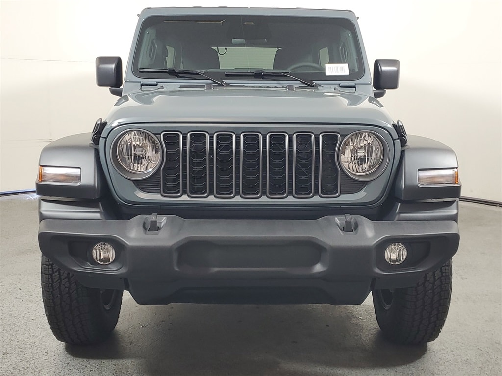 This Wrangler is well equipped with Quick Order Package 23S Sport S (Advanced Brake Assist, Automatic Headlamps, Corning Gorilla Glass, Deep Tint Sunscreen Windows, Enhanced Adaptive Cruise Control, Full Speed Forward Collision Warning Plus, Power Heated Mirrors, Premium Wrapped Steering Wheel, Security Alarm, Sun Visors with Illuminated Vanity Mirrors, and Wheels: 17" x 7.5" Gray), Quick Order Package 24S Sport S, 12.3" Touchscreen Display, 3.45 Overall Top Gear Ratio, 4-Wheel Disc Brakes, 4G LTE Wi-Fi Hot Spot, 8 Speakers, ABS brakes, Air Conditioning, AM/FM radio: SiriusXM with 360L, Apple CarPlay, Apple CarPlay/Android Auto, Aux Battery, Black 3-Piece Hard Top, Brake assist, Cloth Low-Back Bucket Seats, Compass, Connectivity - US/Canada, Delay-off headlights, Driver door bin, Driver vanity mirror, Dual front impact airbags, Dual front side impact airbags, Electronic Stability Control, For More Info, Call 800-643-2112, Freedom Panel Storage Bag, Front anti-roll bar, Front Bucket Seats, Front Center Armrest w/Storage, Front fog lights, Front reading lights, Google Android Auto, Illuminated entry, Integrated Center Stack Radio, Integrated roll-over protection, Low tire pressure warning, MOPAR All-Weather Floor Mats, Myflexcare Service Plan, Non-Lock Fuel Cap Without Discriminator, Normal Duty Suspension, Occupant sensing airbag, Outside temperature display, Overhead airbag, Panic alarm, ParkView Rear Back-Up Camera, Passenger door bin, Passenger vanity mirror, Power steering, Power windows, Radio data system, Radio: Uconnect 5 with 12.3" Display, Rear anti-roll bar, Rear reading lights, Rear Window Defroster, Rear Window Wiper/Washer, Remote keyless entry, SiriusXM Radio Service, SiriusXM with 360L, Speed control, Split folding rear seat, Steering wheel mounted audio controls, Stop-Start Dual Battery System, Tachometer, Telescoping steering wheel, Tilt steering wheel, Traction control, Trip computer, Variably intermittent wipers, and Wheels: 17" x 7.5" Black Steel Styled.