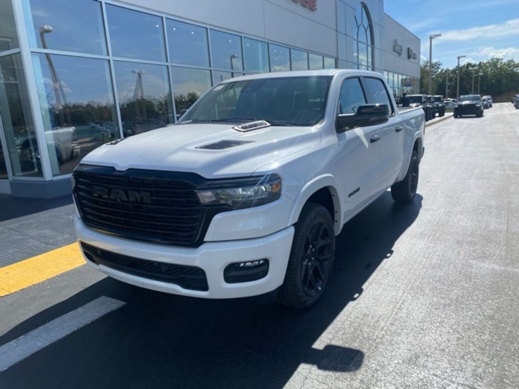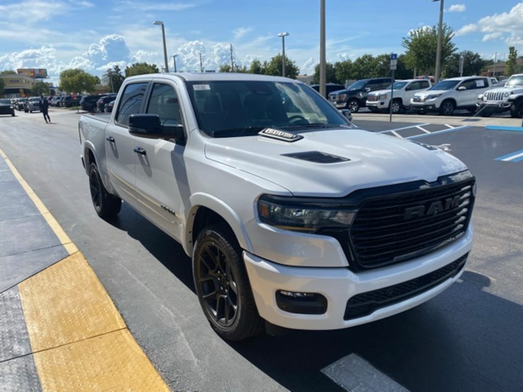 This 1500 is well equipped with Advanced Safety Group II (12-Way/1-Way Trailer Connector, Active Driving Assist System, Drowsy Driver Detection, Evasive Steer Assist, Exterior Mirrors Approach Lamps, Intersection Collision Assist System, Surround View Camera System, and Traffic Sign Recognition), Laramie Level 2 Equipment Group (4G LTE Wi-Fi Hot Spot, Apple CarPlay, Cluster 12" TFT Color Display, Connected Travel & Traffic Services, Connectivity - US/Canada, Google Android Auto, GPS Antenna Input, GPS Navigation, harman/kardon 19 Speaker Premium Sound, HD Radio, Integrated Voice Command w/Bluetooth, Power Tailgate, Radio: Uconnect 5 Nav w/14.4" Display, Rain Sensitive Windshield Wipers, SiriusXM w/360L, and USB Host Flip), Night Edition (3 Rear Seat Head Restraints, 4 Way Front Headrests, Accent Color Door Handles, Accent Color Premium Power Mirrors, Accent Color Tailgate Handle, Anti-Spin Differential Rear Axle, Auto Power-Folding Mirrors, Auto-Dimming Exterior Driver Mirror, Black Exterior Truck Badging, Black Headlamp Bezels, Black Interior Accents, Black Painted Exterior Mirrors Caps, Black Tail Lamp Bezels, Body Color Front Bumper, Body Color Rear Bumper w/Step Pads, Bucket Seats, Convex Wide-Angle Exterior Mirror Insert, Driver Seat Memory, Dual Exhaust w/Black Tips, Exterior Mirrors Courtesy Lamps, Exterior Mirrors w/Heating Element, Exterior Mirrors w/Memory, Exterior Mirrors w/Supplemental Signals, Front Seat Back Map Pockets, Full Length Upgraded Floor Console, Grille Surround 3 Black Texture 2 Black, Heated Front Seats, Heated Second Row Seats, Heated Steering Wheel, Leather Trimmed Bucket Seats, Pirelli Brand Tires, Power 2-Way Driver Lumbar Adjust, Power 2-Way Passenger Lumbar Adjust, Power Adjust 8-Way Driver Seat, Power Adjust 8-Way Front Passenger Seat, Proximity Approach/Departure Lamps, RAM Grille Badge - Black, Rear 60/40 Folding Split Recline Seat, Sport Performance Hood, and Wheels: 22" x 9" Forged Aluminum), Quick Order Package 21H Laramie, 10 Speakers, 3.21 Rear Axle Ratio, 4-Wheel Disc Brakes, ABS brakes, Air Conditioning, Alloy wheels, AM/FM radio: SiriusXM with 360L, Apple CarPlay/Android Auto, Audio memory, Auto High-beam Headlights, Auto-dimming door mirrors, Auto-dimming Rear-View mirror, Automatic temperature control, Brake assist, Bumpers: chrome, Chrome Exterior Mirrors, Compass, Delay-off headlights, Dome Dual LED Reading Lamp, Driver door bin, Driver vanity mirror, Dual front impact airbags, Dual front side impact airbags, Dual-Pane Panoramic Sunroof, Electronic Stability Control, Exterior Parking Camera Rear, Front anti-roll bar, Front Center Armrest w/Storage, Front dual zone A/C, Front fog lights, Front reading lights, Front wheel independent suspension, Fully automatic headlights, Garage door transmitter, Heated door mirrors, Heated front seats, Heated rear seats, Heated steering wheel, Illuminated entry, Leather steering wheel, Leather Trim 40/20/40 Bench Seat, LED Dome/Reading Lamp, Low tire pressure warning, Manufacturer's Statement of Origin, Memory seat, MOPAR Front & Rear Rubber Floor Mats, Navigation System, Occupant sensing airbag, Outside temperature display, Overhead airbag, Overhead console, Panic alarm, Passenger do Not all customers qualify for all rebates. See dealer for details. Price includes: $2000 - 2025 National Overaged Select Inventory Bonus Cash. Exp. 09/30/2025 10% Msrp - 2025 National 10% Below MSRP . Exp
