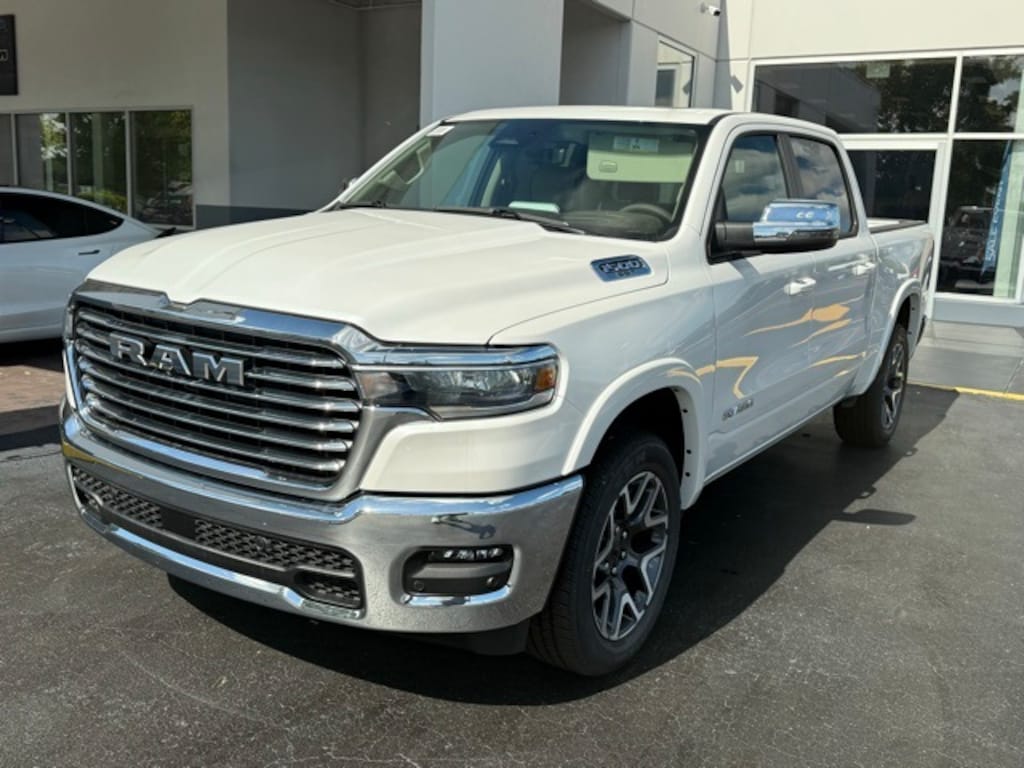 New Price! Ivory White Tri-Coat Pearlcoat 2025 Ram 1500 4D Crew Cab Laramie 4WD 8-Speed Automatic 3.0L I6