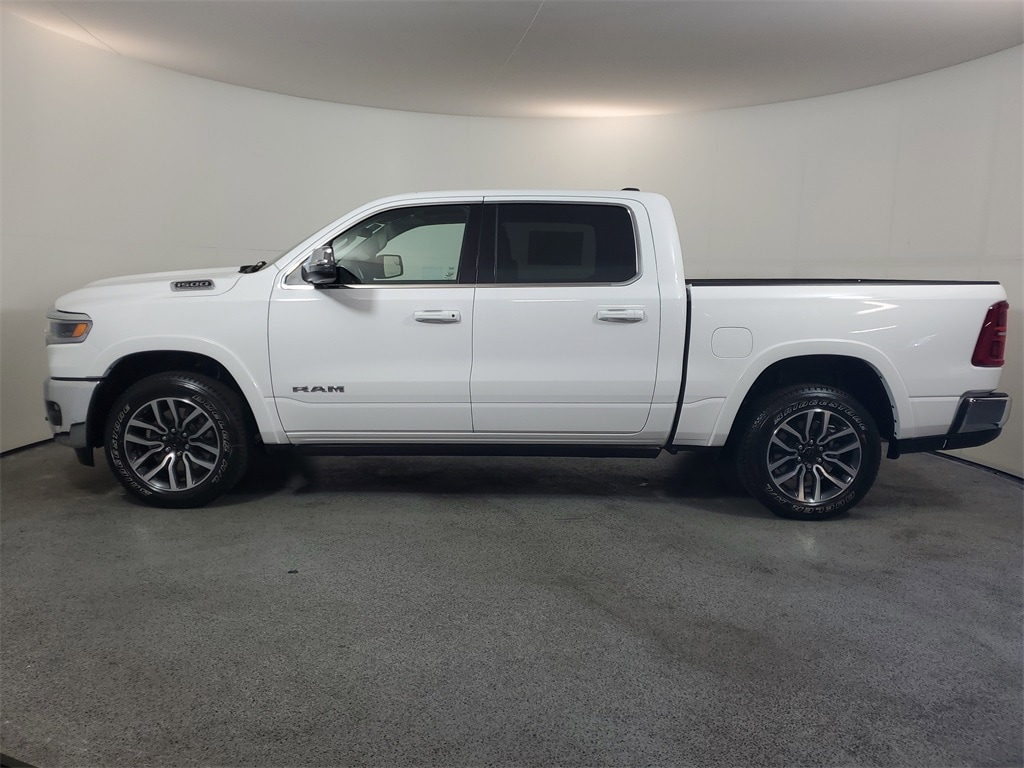 This 1500 is well equipped with Bed Utility Group (Exterior 115V AC Outlet and MOPAR 4 Adjustable Cargo Tie-Down Hooks), Quick Order Package 22K Longhorn (Grille Surround 4 Chrome Texture 5 Chrome, Longhorn Badge, Longhorn Instrument Cluster Theme 3, Premium Door Trim Panel, Premium Filigree Leather Seats, and Warm Chrome Key Fob), 19 Speakers, 3.92 Rear Axle Ratio, 4-Wheel Disc Brakes, 4G LTE Wi-Fi Hot Spot, ABS brakes, Active Noise Control System, Adjustable pedals, Air Conditioning, Alloy wheels, AM/FM radio, Apple CarPlay, Apple CarPlay/Android Auto, Audio memory, Auto High-beam Headlights, Auto Power-Folding Mirrors, Auto-dimming door mirrors, Auto-Dimming Exterior Driver Mirror, Auto-dimming Rear-View mirror, Auto-leveling suspension, Automatic temperature control, Bodyside moldings, Brake assist, Bumpers: chrome, Chrome Exterior Mirrors, Compass, Connected Travel & Traffic Services, Connectivity - US/Canada, Convex Wide-Angle Exterior Mirror Insert, Delay-off headlights, Disassociated Touchscreen Display, Dome Dual LED Reading Lamp, Driver door bin, Driver vanity mirror, Dual front impact airbags, Dual front side impact airbags, Dual-Pane Panoramic Sunroof, Electronic Stability Control, Exterior Mirrors Courtesy Lamps, Exterior Mirrors w/Heating Element, Exterior Mirrors w/Memory, Exterior Mirrors w/Supplemental Signals, Exterior Parking Camera Rear, Front anti-roll bar, Front Bucket Seats, Front Center Armrest w/Storage, Front dual zone A/C, Front fog lights, Front reading lights, Front wheel independent suspension, Fully automatic headlights, Garage door transmitter, Genuine wood console insert, Genuine wood dashboard insert, Genuine wood door panel insert, Global Telematics Box Module (TBM), Google Android Auto, GPS Antenna Input, GPS Navigation, HD Radio, Heated door mirrors, Heated front seats, Heated rear seats, Heated steering wheel, Illuminated entry, Integrated Center Stack Radio, Integrated Voice Command w/Bluetooth, Leather steering wheel, LED Dome/Reading Lamp, Low tire pressure warning, Memory seat, Multi-Function Tailgate, MyFlexCare Service Plan, Navigation System, Occupant sensing airbag, Outside temperature display, Overhead airbag, Overhead console, Panic alarm, Passenger door bin, Passenger vanity mirror, Pedal memory, Power door mirrors, Power driver seat, Power passenger seat, Power steering, Power windows, Premium Quilted Leather Bucket Seats, Radio data system, Radio: Uconnect 5 Nav w/12.0" Display, Rain sensing wipers, RAM's Head Badge, Rear anti-roll bar, Rear reading lights, Rear seat center armrest, Rear step bumper, Rear window defroster, Remote keyless entry, Remote Tailgate Release, Security system, SiriusXM Radio Service, SiriusXM w/360L, Speed control, Split folding rear seat, Steering wheel mounted audio controls, Tachometer, Telescoping steering wheel, Tilt steering wheel, Traction control, Trailer Brake Control, Trip computer, Turn signal indicator mirrors, USB Host Flip, Variably intermittent wipers, Ventilated front seats, Ventilated rear seats, Voltmeter, and Wheels: 20" x 9" Premium Paint/Polished. Some customers may not qualify for all rebates listed, see dealer for details.  Price includes: $3500 - 2026 National Retail Consumer Cash . Exp. 11/03/2025