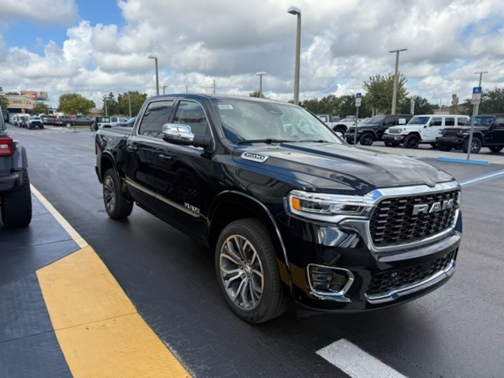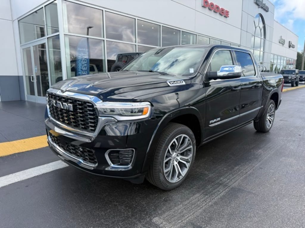 This 1500 is well equipped with Quick Order Package 22V Tungsten, 12-Way/1-Way Trailer Connector, 3.92 Rear Axle Ratio, 4-Wheel Disc Brakes, ABS brakes, Adjustable pedals, Air Conditioning, Alloy wheels, AM/FM radio, Apple CarPlay/Android Auto, Audio memory, Auto High-beam Headlights, Auto Power-Folding Mirrors, Auto-dimming door mirrors, Auto-Dimming Exterior Driver Mirror, Auto-dimming Rear-View mirror, Auto-leveling suspension, Automatic temperature control, Bodyside moldings, Brake assist, Bumpers: body-color, Chrome Exterior Mirrors, Compass, Delay-off headlights, Driver door bin, Driver vanity mirror, Dual front impact airbags, Dual front side impact airbags, Electronic Stability Control, Exterior Mirrors Courtesy Lamps, Exterior Mirrors w/Heating Element, Exterior Mirrors w/Memory, Exterior Mirrors w/Supplemental Signals, Exterior Parking Camera Rear, Front anti-roll bar, Front Bucket Seats, Front Center Armrest w/Storage, Front dual zone A/C, Front fog lights, Front reading lights, Front wheel independent suspension, Fully automatic headlights, Garage door transmitter, Heads-Up Display, Heated door mirrors, Heated front seats, Heated rear seats, Heated steering wheel, Illuminated entry, Leather steering wheel, Low tire pressure warning, Manufacturer's Statement of Origin, Memory seat, MyFlexCare Service Plan, Navigation System, Occupant sensing airbag, Outside temperature display, Overhead airbag, Overhead console, Panic alarm, Passenger door bin, Passenger vanity mirror, Pedal memory, Power adjustable front head restraints, Power door mirrors, Power driver seat, Power moonroof, Power passenger seat, Power steering, Power windows, Premium Leather Bucket Seats, Radio data system, Radio: Uconnect 5 Nav w/14.4" Display, Rain sensing wipers, Rear anti-roll bar, Rear reading lights, Rear seat center armrest, Rear step bumper, Rear window defroster, Remote keyless entry, Security system, Speed control, Split folding rear seat, Steering wheel mounted audio controls, Tachometer, Telescoping steering wheel, Tilt steering wheel, Traction control, Trip computer, Turn signal indicator mirrors, Variably intermittent wipers, Ventilated front seats, Ventilated rear seats, Voltmeter, and Wheels: 22" x 9" Polish/Painted w/Inserts. Not all customers qualify for all rebates. See dealer for details. Price includes: $1000 - 2026 National Retail Consumer Cash . Exp. 11/03/2025