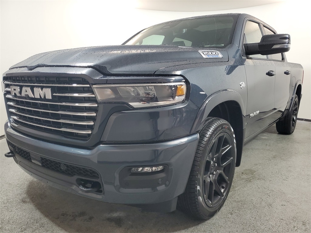 This 1500 is well equipped with Laramie Level 2 Equipment Group (14.4" Touchscreen Display, 4G LTE Wi-Fi Hot Spot, Cluster 12" TFT Color Display, Connected Travel and Traffic Services, Connectivity - US/Canada, Front Passenger Interactive Display, GPS Navigation, Harman/Kardon 19 Speaker Premium Sound, Integrated Center Stack Radio, Integrated Voice Command with Bluetooth, Power Tailgate, Radio: Uconnect 5 Nav with 14.4" Display, Rain Sensitive Windshield Wipers, SiriusXM Radio Service, SiriusXM with 360L, and USB Host Flip), Laramie Preferred Package (Accent Color Premium Power Mirrors, Auto Power-Folding Mirrors, Auto-Dimming Exterior Driver Mirror, Black Painted Exterior Mirrors Caps, Body Color Front Bumper, Body Color Rear Bumper with Step Pads, Convex Wide-Angle Exterior Mirror Insert, Dome Dual LED Reading Lamp, Dual-Pane Panoramic Sunroof, Exterior Mirrors Courtesy Lamps, Exterior Mirrors with Heating Element, Exterior Mirrors with Memory, Exterior Mirrors with Supplemental Signals, Grille Surround 3 Body Color Tex 4 Chrome, LED Dome/Reading Lamp, Power Deployable Running Boards, RAM Grille Badge - Chrome, Tow Hooks, and Trailer Brake Control), Quick Order Package 27H Laramie, 10 Speakers, 4-Wheel Disc Brakes, ABS brakes, Active Noise Control System, Adjustable pedals, Air Conditioning, Alloy wheels, AM/FM radio: SiriusXM with 360L, Apple CarPlay/Android Auto, Audio memory, Auto High-beam Headlights, Auto-dimming door mirrors, Auto-dimming Rear-View mirror, Automatic temperature control, Brake assist, Bumpers: chrome, Chrome Exterior Mirrors, Compass, Delay-off headlights, Driver door bin, Driver vanity mirror, Dual front impact airbags, Dual front side impact airbags, Electronic Stability Control, Front anti-roll bar, Front Bucket Seats, Front Center Armrest w/Storage, Front dual zone A/C, Front fog lights, Front reading lights, Front wheel independent suspension, Fully automatic headlights, Garage door transmitter, Heated door mirrors, Heated front seats, Heated rear seats, Heated steering wheel, Illuminated entry, Leather steering wheel, Leather Trimmed Bucket Seats, Low tire pressure warning, Memory seat, MOPAR Front and Rear Rubber Floor Mats, MyFlexCare Service Plan, Navigation System, Occupant sensing airbag, Off-Road Information Pages, Outside temperature display, Overhead airbag, Overhead console, Panic alarm, ParkView Rear Back-Up Camera, Passenger door bin, Passenger vanity mirror, Pedal memory, Pirelli Brand Tires, Power door mirrors, Power driver seat, Power passenger seat, Power steering, Power windows, Radio data system, Radio: Uconnect 5 Navigation with 12.0" Display, Rear anti-roll bar, Rear reading lights, Rear seat center armrest, Rear step bumper, Remote keyless entry, Security system, Speed control, Split folding rear seat, Steering wheel mounted audio controls, Tachometer, Telescoping steering wheel, Tilt steering wheel, Traction control, Trip computer, Turn signal indicator mirrors, Variably intermittent wipers, Ventilated front seats, Voltmeter, Wheels: 20" x 9" Premium Paint/Polish, and Wheels: 22" x 9" Forged Aluminum. Some customers may not qualify for all rebates listed, see dealer for details. Price includes: $1000 - 2026 National Bonus Cash . Exp. 03/02/2026 $3500 - 2026 National Retail Consumer Cash . Exp. 03/02/2026