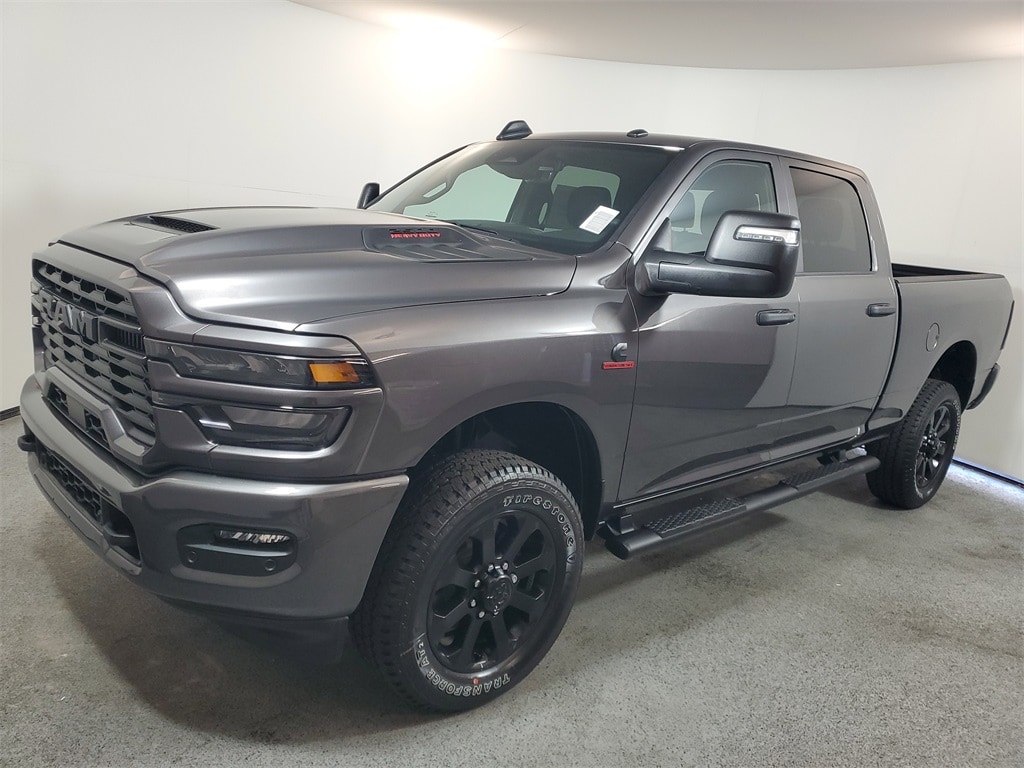 This 2500 is well equipped with Quick Order Package 24C Black Express (2 Way Rear Headrest Seat, 4 Way Front Headrests, 40/20/40 Split Bench Seat, Auto Power-Folding Mirrors, Black Exterior Mirrors, Black Wheel Center Hub, Body Color Grille-Surround, Carpet Floor Covering, Cloth 40/20/40 Bench Seat, Exterior Mirrors Courtesy Lamps, Exterior Mirrors w/Heating Element, Exterior Mirrors w/Supplemental Signals, Forward & Reverse Utility Lights, Front & Rear Floor Mats, Front Armrest w/Cupholders, Manual Adjust 4-Way Driver Seat, Manual Adjust 4-Way Front Passenger Seat, Mirror Running Lights, Mopar Black Tubular Side Steps, Painted Front Bumper, Painted Rear Bumper, ParkSense Front/Rear Park Assist System, Power Adjust Mirrors, Power Heated Folding Telescopic Mirrors, Power Telescoping Mirrors, Power-Adjustable Convex Aux Mirrors, Rear Folding Seat, Remote USB Port - Charge Only, Sport Performance Hood, Storage Tray, and Wheels: 20" x 8.0" Black Painted Aluminum), Tradesman Level 1 Equipment Group (115V Auxiliary Front Power Outlet, 12" Touchscreen Display, 400W Inverter, 4G LTE Wi-Fi Hot Spot, Air Conditioning ATC w/Dual Zone Control, Alexa Built-In, Apple CarPlay, Auto-Dimming Rear-View Mirror, Connected Travel & Traffic Services, Connectivity - US/Canada, Disassociated Touchscreen Display, Emergency Vehicle Alert System (EVAS), Exterior 115V AC Outlet, For Details, Visit DriveUconnect.com, For More Info, Call 800-643-2112, Global Telematics Box Module (TBM), Google Android Auto, GPS Antenna Input, GPS Navigation, HD Radio, Integrated Voice Command w/Bluetooth, Off-Road Info Pages, Radio: Uconnect 5 Nav w/12.0" Display, Rear Power Sliding Window, Selectable Tire Fill Alert, SiriusXM Radio Service, SiriusXM w/360L, Tinted Acoustic Windshield Glass, and Trailer Tow Pages), 4-Wheel Disc Brakes, 6 Speakers, ABS brakes, Air Conditioning, AM/FM radio: SiriusXM, Anti-Spin Differential Rear Axle, Apple CarPlay/Android Auto, Brake assist, Compass, Delay-off headlights, Driver door bin, Dual front impact airbags, Dual front side impact airbags, Electronic Stability Control, Front anti-roll bar, Front Center Armrest w/Storage, Front fog lights, Front reading lights, Fully automatic headlights, Heavy Duty Vinyl 40/20/40 Split Bench Seat, Illuminated entry, Low tire pressure warning, Manual Folding Exterior Mirrors, Manual Telescoping Mirrors, MyFlexCare Service Diesel, Occupant sensing airbag, Outside temperature display, Overhead airbag, Overhead console, Panic alarm, ParkView Rear Back-Up Camera, Passenger door bin, Passenger vanity mirror, Power steering, Power windows, Radio data system, Radio: Uconnect 5 w/8.4" Display, Rear anti-roll bar, Rear step bumper, Rear window defroster, Remote keyless entry, Speed control, Tachometer, Tilt steering wheel, Traction control, Variably intermittent wipers, Voltmeter, and Wheels: 17" x 7.5" Black Steel Styled. Some customers may not qualify for all rebates listed, see dealer for details. Price includes: $1000 - 2026 National Bonus Cash . Exp. 11/03/2025