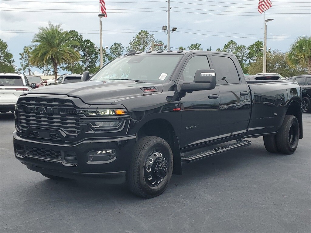 This 3500 is well equipped with Big Horn Level 2 Plus Equipment Group (115V Auxiliary Front Power Outlet, 12" Touchscreen Display, 2 Way Rear Headrest Seat, 2nd Row In Floor Storage Bins, 4 Way Front Headrests, 400W Inverter, 4G LTE Wi-Fi Hot Spot, 9 Alpine Speakers w/Subwoofer, Active Lane Management System, Adaptive Steering System, Air Conditioning ATC w/Dual Zone Control, Alexa Built-In, Apple CarPlay, Auto High Beam Headlamp Control, Auto Power-Folding Mirrors, Auto-Dimming Rear-View Mirror, Black Exterior Mirrors, Blind Spot & Cross Path Detection, Bucket Seats, Cluster 7.0" TFT Color Display, Connected Travel & Traffic Services, Connectivity - US/Canada, CTR Stop Lamp w/Cargo View Camera, Dampened Tailgate, Disassociated Touchscreen Display, Drowsy Driver Detection, Dual Glove Boxes, Dual Wireless Charging Pad, Emergency Vehicle Alert System (EVAS), Exterior 115V AC Outlet, Exterior Mirrors Courtesy Lamps, Exterior Mirrors w/Heating Element, Exterior Mirrors w/Supplemental Signals, Foam Bottle Insert (Door Trim Panel), Folding Flat Load Floor Storage, Footwell Courtesy Lamp, For Details Visit DriveUconnect.com, For More Info, Call 800-643-2112, Forward & Reverse Utility Lights, Front Seat Back Map Pockets, Full Length Upgraded Floor Console, Global Telematics Box Module (TBM), Glove Box Lamp, Google Android Auto, GPS Antenna Input, GPS Navigation, HD Radio, Heated Front Seats, Heated Steering Wheel, Integrated Voice Command w/Bluetooth, LED Bed Lighting, LED Tail Lamps, Locking Lower Glove Box, Luxury Steering Wheel, Manual Adjust 4-Way Front Passenger Seat, Mirror Running Lights, MOPAR Deployable Bed Step, MOPAR Spray In Bedliner, Off-Road Information Pages, Power 2-Way Driver Lumbar Adjust, Power Adjust 8-Way Driver Seat, Power Adjust Mirrors, Power Adjustable Pedals, Power Heated Fold Telescopic Mirrors, Power Telescoping Mirrors, Power-Adjustable Convex Aux Mirrors, Premium Cloth Bucket Seats, Radio: Uconnect 5 Nav w/12.0" Display, Rain Sensitive Windshield Wipers, Rear 60/40 Folding Seat, Rear Dome w/On/Off Switch Lamp, Rear Power Sliding Window, Red Tail Lamp Bezels, Remote Start System, Selectable Tire Fill Alert, SiriusXM Radio Service, SiriusXM w/360L, Steering Wheel Mounted Audio Controls, Sun Visors w/Illuminated Vanity Mirrors, Surround View Camera System, Traffic Sign Recognition, Trailer Reverse Guidance, Trailer Tire Pressure Monitoring System, Trailer Tow Pages, and Universal Garage Door Opener), Max Tow Package (5th Wheel/Gooseneck Towing Prep Group), Night Edition (Black Exterior Truck Badging, Black Interior Accents, Black Wheel Center Hub, Body Color Grille Surround, Gloss Black Nostrils/Molded in Color Black Grille, Painted Front Bumper, and Painted Rear Bumper), Quick Order Package 24Z Big Horn, 4-Wheel Disc Brakes, 40/20/40 Split Bench Seat, 50 Gallon Fuel Tank, 6 Speakers, 6000# Front Axle w/Hub Ext, ABS brakes, Air Conditioning, Alloy wheels, AM/FM radio: SiriusXM, Apple CarPlay/Android Auto, Box & Rear Fender Clearance Lamps, Brake assist, Bumpers: chrome, Center Hub, Clearance Lamps, Cloth 40/20/40 Bench Seat, Compass, Dash Pass Thru Wire Circuits, Delay-off headlights, Driver door bin, Dual Alternators Rated at 480 Amps, Dual front impact airbags, Dual front side impact airbags, Dual Rear Wheels, Electronic St Some customers may not qualify for all rebates listed, see dealer for details. Price includes: $1000 - 2026 National Bonus Cash . Exp