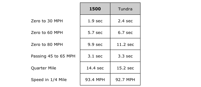 1500 V8 is faster than the Toyota Tundra V8: