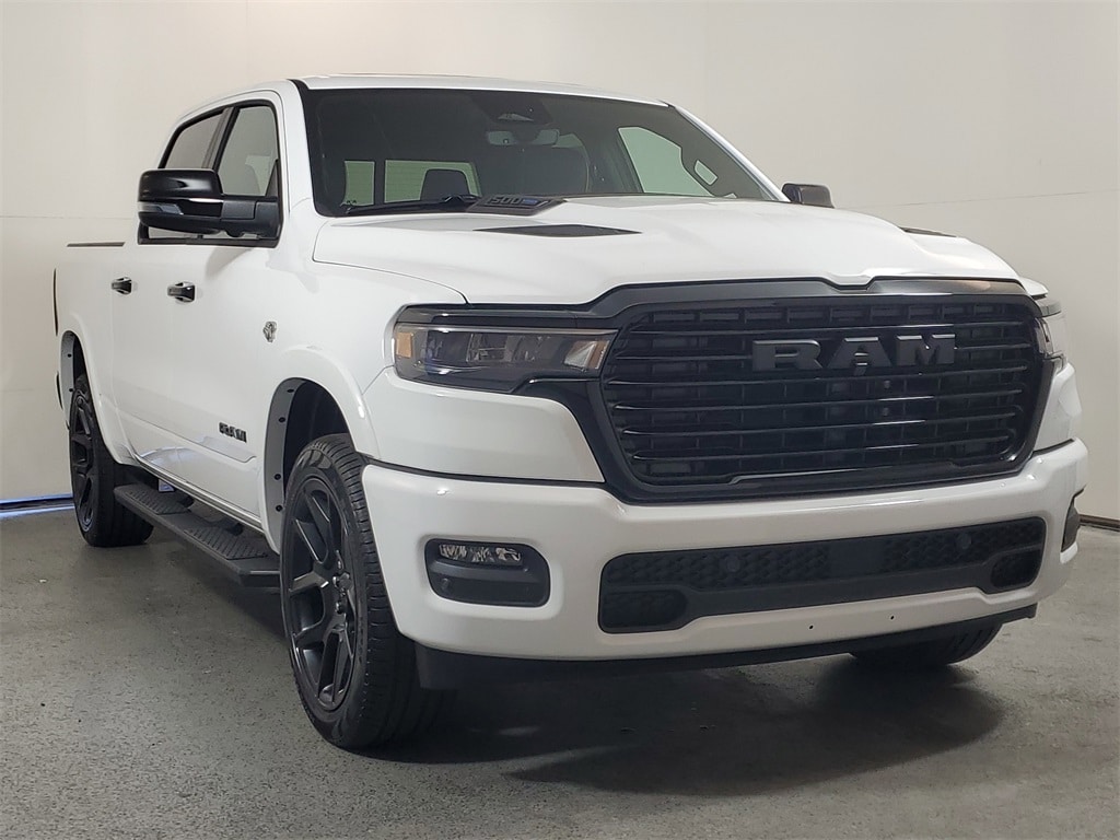 This 1500 is well equipped with Laramie Level 2 Equipment Group (14.4" Touchscreen Display, 4G LTE Wi-Fi Hot Spot, Cluster 12" TFT Color Display, Connected Travel and Traffic Services, Connectivity - US/Canada, Front Passenger Interactive Display, GPS Navigation, Harman/Kardon 19 Speaker Premium Sound, Integrated Center Stack Radio, Integrated Voice Command with Bluetooth, Power Tailgate, Radio: Uconnect 5 Nav with 14.4" Display, Rain Sensitive Windshield Wipers, SiriusXM Radio Service, SiriusXM with 360L, and USB Host Flip), Night Edition (Accent Color Door Handles, Accent Color Premium Power Mirrors, Accent Color Tailgate Handle, Anti-Spin Differential Rear Axle, Auto Power-Folding Mirrors, Auto-Dimming Exterior Driver Mirror, Black Exterior Truck Badging, Black Headlamp Bezels, Black Interior Accents, Black Painted Exterior Mirrors Caps, Black Tail Lamp Bezels, Body Color Front Bumper, Body Color Rear Bumper with Step Pads, Convex Wide-Angle Exterior Mirror Insert, Dual Exhaust with Black Tips, Exterior Mirrors Approach Lamps, Exterior Mirrors Courtesy Lamps, Exterior Mirrors with Heating Element, Exterior Mirrors with Memory, Exterior Mirrors with Supplemental Signals, Grille Surround 3 Black Texture 2 Black, Pirelli Brand Tires, Proximity Approach/Departure Lamps, RAM Grille Badge - Black, Sport Performance Hood, and Wheels: 22" x 9" Forged Aluminum), Quick Order Package 27H Laramie, 10 Speakers, 4-Wheel Disc Brakes, ABS brakes, Active Noise Control System, Air Conditioning, Alloy wheels, AM/FM radio: SiriusXM with 360L, Apple CarPlay/Android Auto, Audio memory, Auto High-beam Headlights, Auto-dimming door mirrors, Auto-dimming Rear-View mirror, Automatic temperature control, Brake assist, Bumpers: chrome, Chrome Exterior Mirrors, Compass, Delay-off headlights, Dome Dual LED Reading Lamp, Driver door bin, Driver vanity mirror, Dual front impact airbags, Dual front side impact airbags, Dual-Pane Panoramic Sunroof, Electronic Stability Control, Front anti-roll bar, Front Bucket Seats, Front Center Armrest w/Storage, Front dual zone A/C, Front fog lights, Front reading lights, Front wheel independent suspension, Fully automatic headlights, Garage door transmitter, Heated door mirrors, Heated front seats, Heated rear seats, Heated steering wheel, Illuminated entry, Leather steering wheel, Leather Trimmed Bucket Seats, LED Dome/Reading Lamp, Low tire pressure warning, Memory seat, MOPAR Front and Rear Rubber Floor Mats, MyFlexCare Service Plan, Navigation System, Occupant sensing airbag, Off-Road Information Pages, Outside temperature display, Overhead airbag, Overhead console, Panic alarm, ParkView Rear Back-Up Camera, Passenger door bin, Passenger vanity mirror, Power door mirrors, Power driver seat, Power passenger seat, Power steering, Power windows, Radio data system, Radio: Uconnect 5 Navigation with 12.0" Display, RAM Grille Badge - Chrome, Rear anti-roll bar, Rear reading lights, Rear seat center armrest, Rear step bumper, Remote keyless entry, Security system, Speed control, Split folding rear seat, Steering wheel mounted audio controls, Tachometer, Telescoping steering wheel, Tilt steering wheel, Traction control, Trip computer, Turn signal indicator mirrors, Variably intermittent wipers, Ventilated Some customers may not qualify for all rebates listed, see dealer for details. Price includes: $3500 - 2026 National Retail Consumer Cash . Exp