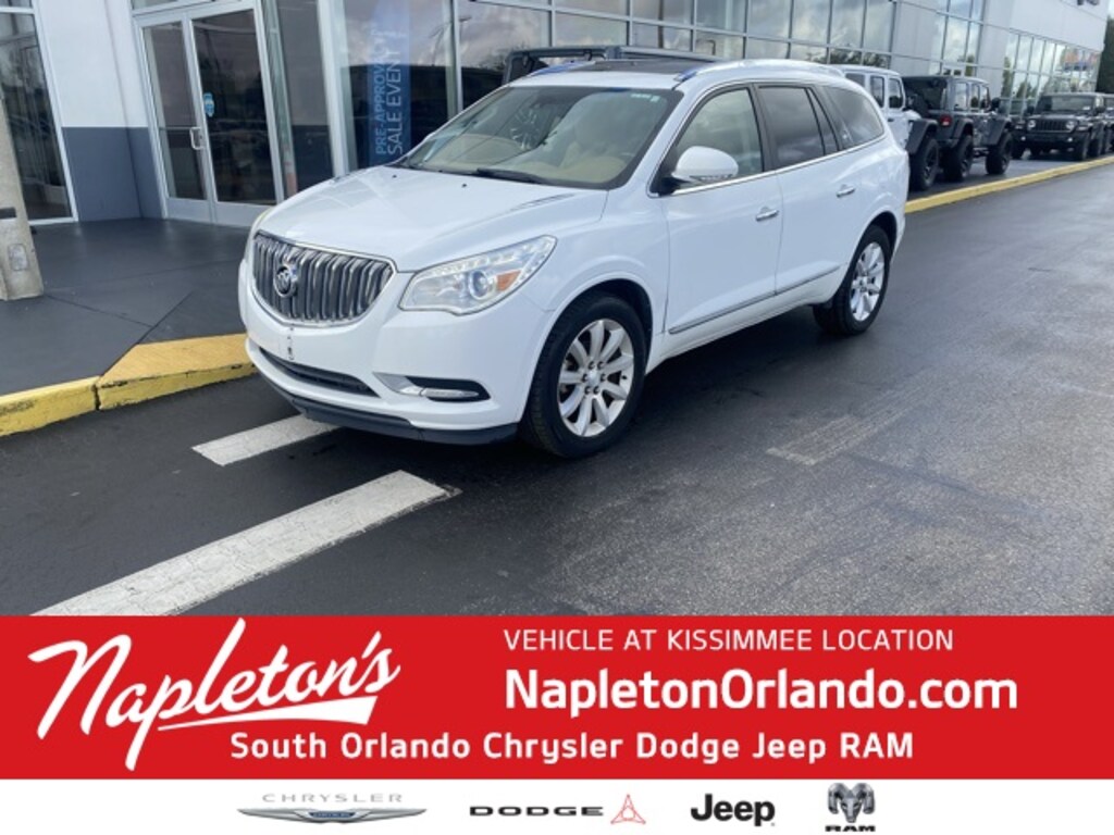 This Enclave is well equipped with 4500lbs Trailering Package (Heavy-Duty Cooling System and Trailer Hitch), Buick Interior Protection Package (LPO) (3rd Row All-Weather Floor Mats, All-Weather Cargo Mat (LPO), and All-Weather Floor Mats), Experience Buick Package (Power Tilt-Sliding Moonroof and Wheels: 20" Bright-Machined Aluminum), Preferred Equipment Group 1SN (Bose Performance-Enhanced 10-Speaker System, Bose Sound System, Forward Collision Alert & Lane Departure Warning, and Rear Audio System Controls), Premium Package (Articulating Headlights, Heated & Cooled Driver & Front Passenger Seats, Power Tilt & Telescopic Steering Column, and Power-Folding Heated Body-Color Outside Mirrors), 10 Speakers, 3.16 Axle Ratio, 3rd row seats: split-bench, 4-Wheel Disc Brakes, 7-Passenger Seating, ABS brakes, Air Conditioning, Alloy wheels, AM/FM radio: SiriusXM, Auto tilt-away steering wheel, Auto-dimming door mirrors, Auto-dimming Rear-View mirror, Automatic temperature control, Brake assist, Bumpers: body-color, CD player, Compass, Delay-off headlights, Driver door bin, Driver vanity mirror, Dual front impact airbags, Dual front side impact airbags, Electronic Stability Control, Emergency communication system: OnStar Guidance, Exterior Parking Camera Rear, Four wheel independent suspension, Front anti-roll bar, Front Bucket Seats, Front Center Armrest w/Storage, Front dual zone A/C, Front reading lights, Fully automatic headlights, Garage door transmitter, Heated door mirrors, Heated front seats, Heated steering wheel, High intensity discharge headlights: Bi-Xenon, Illuminated entry, Leather steering wheel, Low tire pressure warning, Memory seat, Navigation System, NavTraffic, Occupant sensing airbag, Outside temperature display, Overhead airbag, Panic alarm, Passenger door bin, Passenger vanity mirror, Perforated Leather-Appointed Seat Trim, Power door mirrors, Power driver seat, Power Liftgate, Power passenger seat, Power steering, Power windows, Radio data system, Radio: Color Touch AM/FM/CD/Nav w/IntelliLink, Rear air conditioning, Rear anti-roll bar, Rear audio controls, Rear Parking Sensors, Rear reading lights, Rear window defroster, Rear window wiper, Remote keyless entry, Roof rack: rails only, Security system, Speed control, Speed-sensing steering, Spoiler, Steering wheel memory, Steering wheel mounted audio controls, Tachometer, Telescoping steering wheel, Tilt steering wheel, Traction control, Trip computer, Turn signal indicator mirrors, Variably intermittent wipers, Ventilated front seats, Voltmeter, and Wheels: 19" Chrome-Clad Cast Aluminum.