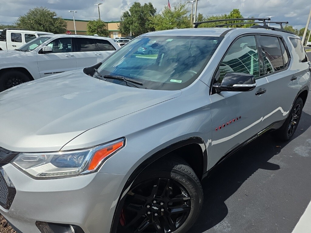 This Traverse is well equipped with Driver Confidence II Package (Forward Collision Alert, Front Pedestrian Braking, IntelliBeam Auto High Beam Control Headlamps, Lane Keep Assist w/Lane Departure Warning, Low Speed Forward Automatic Braking, and Following Distance Indicator), Preferred Equipment Group 1LZ, Redline Edition (Dual SkyScape 2-Panel Power Sunroof, Wheels: 20" Gloss Black Painted Alum w/Red Stripes, Black Door Handles, and Ornamentation), Trailering Equipment (Heavy-Duty Cooling System), Interior Protection Package (LPO) (1st & 2nd Row All-Weather Floor Mats, 3rd Row All-Weather Floor Mats, and All-Weather Cargo Mat (LPO)), Apple CarPlay/Android Auto, Brake assist, Electronic Stability Control, Heated front seats, Heated rear seats, Navigation System, Perforated Leather-Appointed Seat Trim, Power Liftgate, Ventilated front seats, 10 Speakers, 3.49 Axle Ratio, 3rd row seats: split-bench, 4-Wheel Disc Brakes, 7-Passenger Seating (2-2-3 Seating Configuration), ABS brakes, Air Conditioning, Alloy wheels, AM/FM radio: SiriusXM, Auto-dimming door mirrors, Auto-dimming Rear-View mirror, Automatic temperature control, Black Roof Rack Cross Rails, Bose Premium 10-Speaker Audio System Feature, Bumpers: body-color, Compass, Delay-off headlights, Driver door bin, Driver vanity mirror, Dual front impact airbags, Dual front side impact airbags, Emergency communication system, Four wheel independent suspension, Front anti-roll bar, Front Bucket Seats, Front Center Armrest, Front dual zone A/C, Front fog lights, Front reading lights, Fully automatic headlights, Garage door transmitter, Heated door mirrors, Heated steering wheel, Illuminated entry, Low tire pressure warning, Memory seat, Occupant sensing airbag, Outside temperature display, Overhead airbag, Overhead console, Panic alarm, Passenger door bin, Passenger vanity mirror, Power door mirrors, Power driver seat, Power passenger seat, Power steering, Power windows, Premium audio system: Chevrolet MyLink, Radio data system, Radio: Chevrolet Infotainment AM/FM Stereo w/Navigation, Rear air conditioning, Rear anti-roll bar, Rear reading lights, Rear window defroster, Rear window wiper, Remote keyless entry, Roof rack: rails only, Security system, SiriusXM Radio, Speed control, Speed-sensing steering, Spoiler, Steering wheel memory, Steering wheel mounted audio controls, Tachometer, Telescoping steering wheel, Tilt steering wheel, Traction control, Trip computer, Turn signal indicator mirrors, Variably intermittent wipers, Voltmeter, and Wheels: 20" Argent Metallic Machine Faced Aluminum.