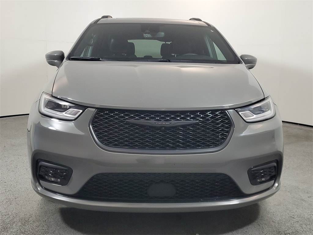 This Pacifica is well equipped with S Appearance Package (Perforated Leather Bucket Seats w/S Logo, Piano Black Interior Accents, S Badge, Wheels: 20" x 7.5" S-Model Aluminum Design 1, Anodized Ice Cave Accents, Anodized Ink Badging, Black Day Light Opening Moldings, Premium Fascia Upper/Lower Grille w/Black Surround, and Premium Rear Fascia Black), Safety Sphere Unavailable (ParkSense Rear Park Assist w/Stop and ParkView Rear Back-Up Camera), Quick Order Package 27L, 10.1" Touchscreen Display, Apple CarPlay, Apple CarPlay/Android Auto, Brake assist, Electronic Stability Control, ParkSense Rear Park Assist Unavailable, Power Front/Fixed Rear Full Sunroof, Power Liftgate, Power Open/Close Shade, Radio: Uconnect 5 w/10.1" Display, 17" x 7.0" Aluminum Wheels, 3.25 Axle Ratio, 3rd row seats: split-bench, 4-Wheel Disc Brakes, 6 Speakers, ABS brakes, Air Conditioning, Alloy wheels, AM/FM radio: SiriusXM, Auto-dimming Rear-View mirror, Automatic temperature control, Black Seats, Bumpers: body-color, Compass, Delay-off headlights, Disassociated Touchscreen Display, Driver door bin, Driver vanity mirror, Driver's Seat Mounted Armrest, Dual front impact airbags, Dual front side impact airbags, For More Info, Call 800-643-2112, Four wheel independent suspension, Front anti-roll bar, Front Bucket Seats, Front dual zone A/C, Front fog lights, Front reading lights, Fully automatic headlights, Garage door transmitter, Google Android Auto, GPS Antenna Input, Heated door mirrors, Heated front seats, Heated steering wheel, Illuminated entry, Integrated Active Noise Cancellation, Integrated Center Stack Radio, Knee airbag, Low tire pressure warning, Memory seat, Occupant sensing airbag, Outside temperature display, Overhead airbag, Overhead console, Panic alarm, Passenger door bin, Passenger seat mounted armrest, Passenger vanity mirror, Perforated Leather Trim Bucket Seats, Power door mirrors, Power driver seat, Power steering, Power windows, Radio data system, Rain sensing wipers, Rear air conditioning, Rear reading lights, Rear window defroster, Rear window wiper, Reclining 3rd row seat, Remote keyless entry, Roof rack, Security system, SiriusXM Radio Service, SiriusXM Satellite Radio, Speed control, Split folding rear seat, Spoiler, Steering wheel mounted audio controls, Tachometer, Telescoping steering wheel, Tilt steering wheel, Touring Suspension, Traction control, Trip computer, Turn signal indicator mirrors, USB Host Flip, Variably intermittent wipers, and Voltmeter.