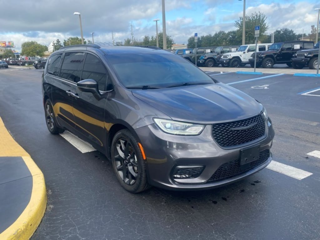 This Pacifica is well equipped with Quick Order Package 27L, S Appearance Package (Anodized Ice Cave Accents, Anodized Ink Badging, Black Day Light Opening Moldings, Black Stow 'N Place Roof Rack, Caprice Leatherette Bucket Seats w/S Logo, Piano Black Interior Accents, Premium Fascia Upper/Lower Grille w/Black Surround, Premium Rear Fascia Black, S Badge, and Wheels: 20" x 7.5" S-Model Aluminum Design 1), Safety Sphere (360 Surround View Camera System, Parallel & Perpendicular Park Assist w/Stop, and ParkSense Front/Rear Park Assist w/Stop), 10.1" Touchscreen Display, 17" x 7.0" Aluminum Wheels, 3.25 Axle Ratio, 3rd row seats: split-bench, 4-Wheel Disc Brakes, 6 Speakers, ABS brakes, Air Conditioning, Alloy wheels, AM/FM radio: SiriusXM, Apple CarPlay, Apple CarPlay/Android Auto, Audio memory, Automatic temperature control, Black Seats, Brake assist, Bumpers: body-color, Caprice Leatherette Bucket Seats, Compass, Delay-off headlights, Disassociated Touchscreen Display, Driver door bin, Driver vanity mirror, Driver's Seat Mounted Armrest, Dual front impact airbags, Dual front side impact airbags, Electronic Stability Control, Four wheel independent suspension, Front anti-roll bar, Front Bucket Seats, Front dual zone A/C, Front Fascia Air Deflectors, Front fog lights, Front reading lights, Fully automatic headlights, Google Android Auto, GPS Antenna Input, Heated door mirrors, Heated front seats, Heated steering wheel, Illuminated entry, Integrated Active Noise Cancellation, Integrated Center Stack Radio, Knee airbag, Low tire pressure warning, Memory seat, Occupant sensing airbag, Outside temperature display, Overhead airbag, Overhead console, Panic alarm, ParkView Rear Back-Up Camera, Passenger door bin, Passenger seat mounted armrest, Passenger vanity mirror, Power door mirrors, Power driver seat, Power Liftgate, Power steering, Power windows, Radio data system, Radio: Uconnect 5 w/10.1" Display, Rain sensing wipers, Rear air conditioning, Rear reading lights, Rear window defroster, Rear window wiper, Reclining 3rd row seat, Remote keyless entry, Security system, Speed control, Split folding rear seat, Spoiler, Steering wheel mounted audio controls, Tachometer, Telescoping steering wheel, Tilt steering wheel, Touring Suspension, Traction control, Trip computer, Turn signal indicator mirrors, USB Host Flip, Variably intermittent wipers, and Voltmeter.