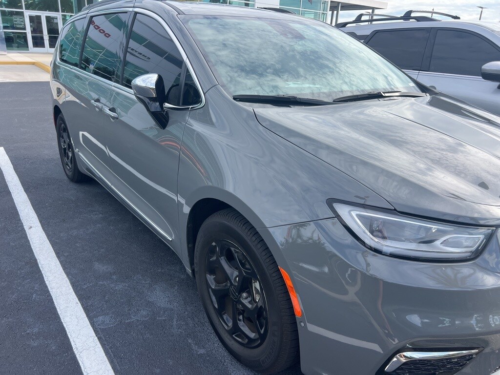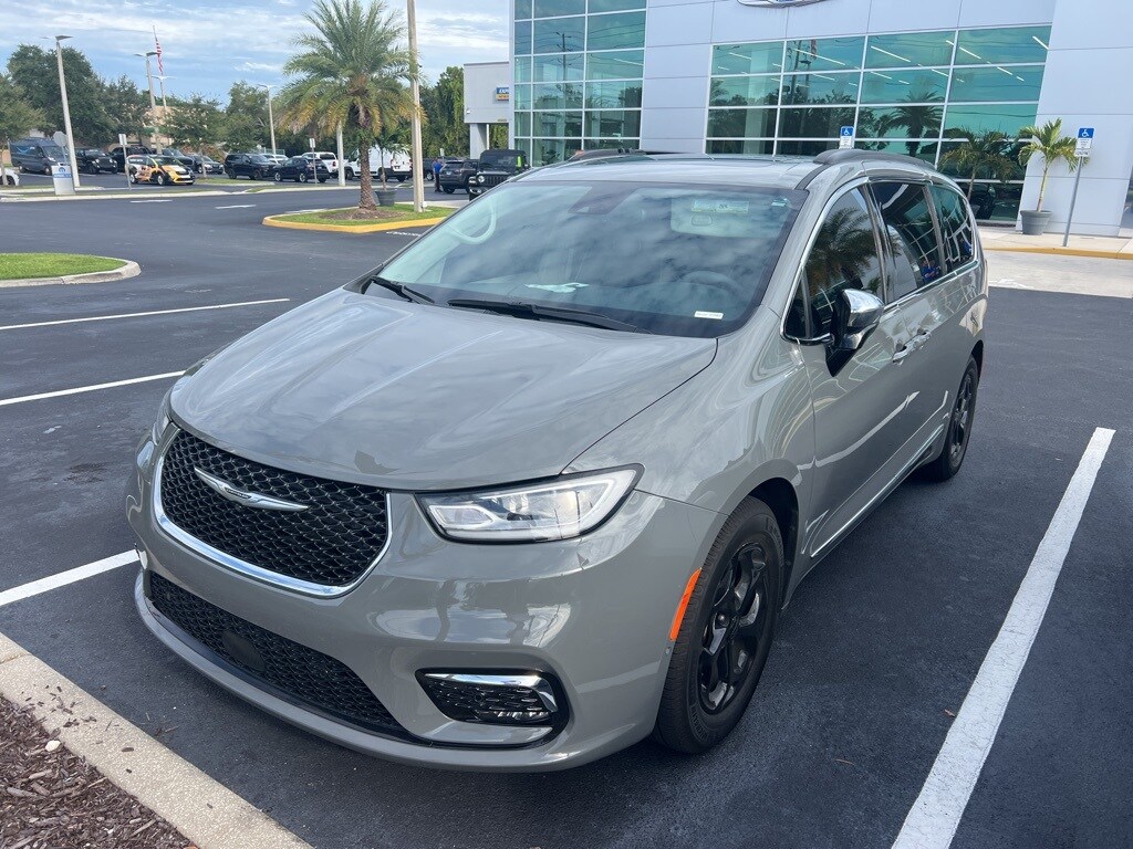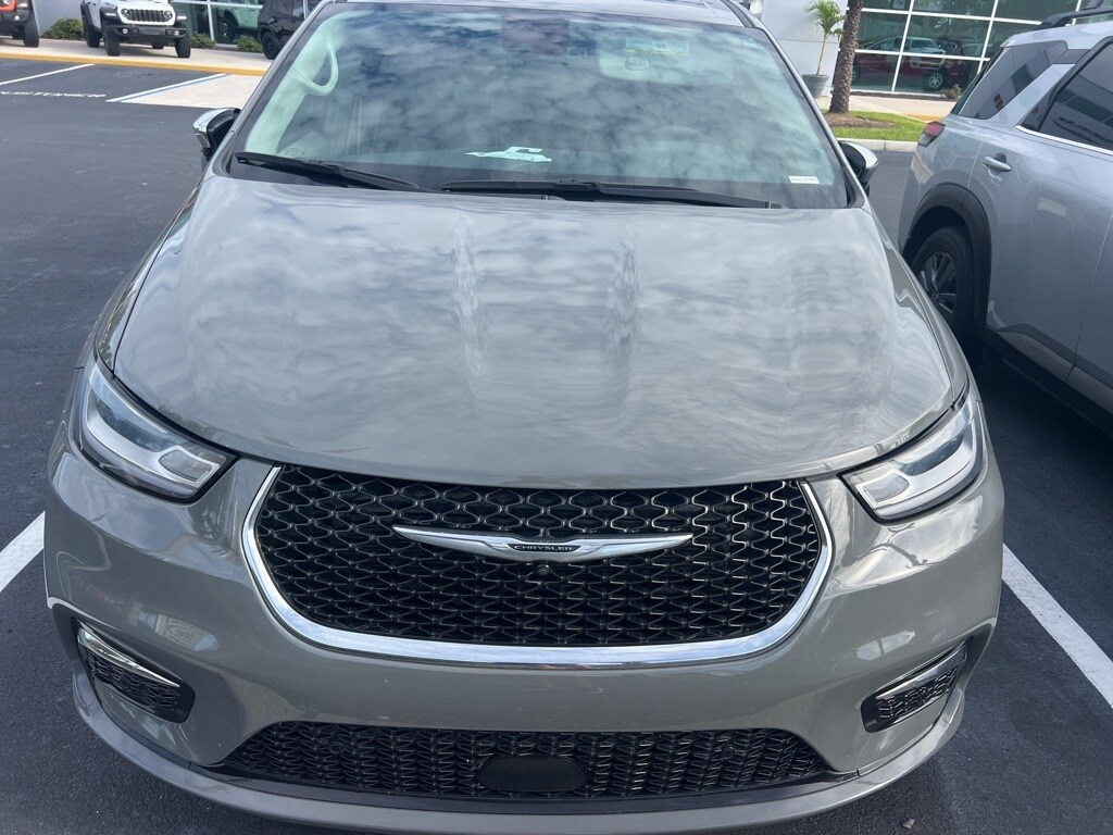 This Pacifica is well equipped with Safety Sphere (360 Surround View Camera System, Parallel & Perpendicular Park Assist w/Stop, and ParkSense Front/Rear Park Assist w/Stop), Quick Order Package 27P, Uconnect Theater Family Group (Stow N Vac Integrated Vacuum, 115V Auxiliary Power Outlet, 19 harman/kardon Speakers w/Subwoofer, 3-Channel Video Remote Control, 3rd Row Remote Headrest Dumping, 760 Watt Amplifier, Amazon Fire TV Built-In, Blu-Ray/DVD Player/USB Port, FamCAM Interior Camera, Hands Free Sliding Doors, High Definition Multimedia Interface, Integrated Active Noise Cancellation, KeySense, Power Folding 3rd Row Seat, Seatback Video Screens, and Video USB Port), Apple CarPlay/Android Auto, Brake assist, Nappa Leather Bucket Seats, Navigation System, ParkView Rear Back-Up Camera, Power Liftgate, Power moonroof, 13 Speakers, 3.25 Axle Ratio, 3rd row seats: split-bench, 4-Wheel Disc Brakes, ABS brakes, Air Conditioning, Alloy wheels, AM/FM radio: SiriusXM 360L, Audio memory, Auto-dimming Rear-View mirror, Automatic temperature control, Black Seats, Bodyside moldings, Bumpers: body-color, Compass, Delay-off headlights, Driver door bin, Driver vanity mirror, Driver's Seat Mounted Armrest, Dual front impact airbags, Dual front side impact airbags, Electronic Stability Control, Emergency communication system: SiriusXM Guardian, Four wheel independent suspension, Front anti-roll bar, Front Bucket Seats, Front dual zone A/C, Front fog lights, Front reading lights, Fully automatic headlights, Garage door transmitter, Heated door mirrors, Heated front seats, Heated rear seats, Heated steering wheel, Illuminated entry, Knee airbag, Low tire pressure warning, Memory seat, Occupant sensing airbag, Outside temperature display, Overhead airbag, Overhead console, Panic alarm, Passenger door bin, Passenger seat mounted armrest, Passenger vanity mirror, Power door mirrors, Power driver seat, Power passenger seat, Power steering, Power windows, Radio data system, Radio: Uconnect 5 Nav w/10.1" Display, Rain sensing wipers, Rear air conditioning, Rear reading lights, Rear window defroster, Rear window wiper, Reclining 3rd row seat, Remote keyless entry, Roof rack, Security system, Speed control, Split folding rear seat, Spoiler, Steering wheel mounted audio controls, Tachometer, Telescoping steering wheel, Tilt steering wheel, Touring Suspension, Traction control, Trip computer, Turn signal indicator mirrors, Variably intermittent wipers, Ventilated front seats, Voltmeter, and Wheels: 18" x 7.5" Painted Aluminum Design 2.