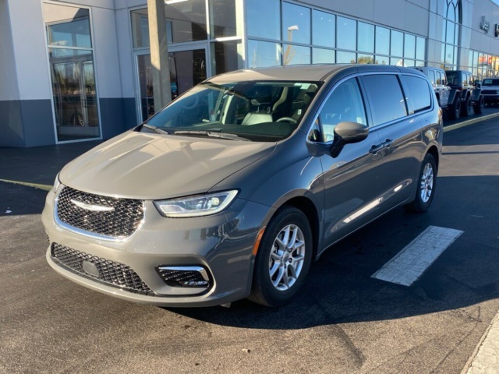 This Pacifica is well equipped with Quick Order Package 27L, 10.1" Touchscreen Display, 17" x 7.0" Aluminum Wheels, 3.25 Axle Ratio, 3rd row seats: split-bench, 4-Wheel Disc Brakes, 6 Speakers, ABS brakes, Air Conditioning, Alloy wheels, AM/FM radio: SiriusXM, Apple CarPlay, Apple CarPlay/Android Auto, Audio memory, Automatic temperature control, Black Seats, Brake assist, Bumpers: body-color, Caprice Leatherette Bucket Seats, Compass, Delay-off headlights, Disassociated Touchscreen Display, Driver door bin, Driver vanity mirror, Driver's Seat Mounted Armrest, Dual front impact airbags, Dual front side impact airbags, Electronic Stability Control, Four wheel independent suspension, Front anti-roll bar, Front Bucket Seats, Front dual zone A/C, Front Fascia Air Deflectors, Front fog lights, Front reading lights, Fully automatic headlights, Google Android Auto, GPS Antenna Input, Heated door mirrors, Heated front seats, Heated steering wheel, Illuminated entry, Integrated Active Noise Cancellation, Integrated Center Stack Radio, Knee airbag, Low tire pressure warning, Memory seat, Occupant sensing airbag, Outside temperature display, Overhead airbag, Overhead console, Panic alarm, ParkView Rear Back-Up Camera, Passenger door bin, Passenger seat mounted armrest, Passenger vanity mirror, Power door mirrors, Power driver seat, Power Liftgate, Power steering, Power windows, Radio data system, Radio: Uconnect 5 w/10.1" Display, Rain sensing wipers, Rear air conditioning, Rear reading lights, Rear window defroster, Rear window wiper, Reclining 3rd row seat, Remote keyless entry, Security system, Speed control, Split folding rear seat, Spoiler, Steering wheel mounted audio controls, Tachometer, Telescoping steering wheel, Tilt steering wheel, Touring Suspension, Traction control, Trip computer, Turn signal indicator mirrors, USB Host Flip, Variably intermittent wipers, and Voltmeter.