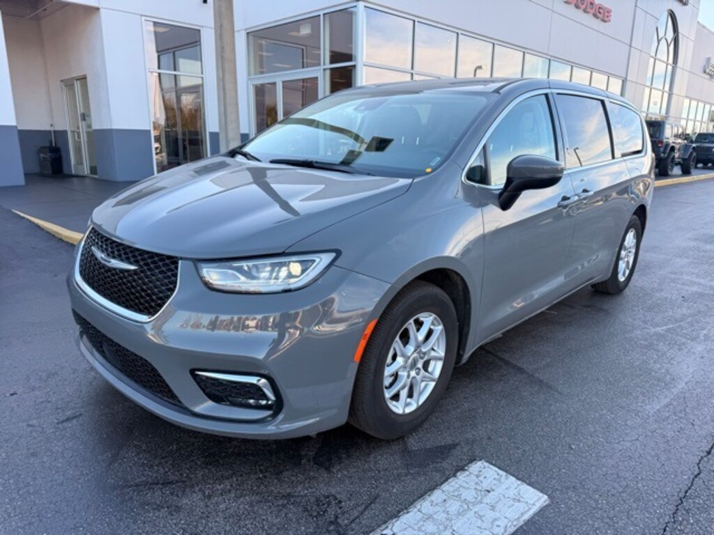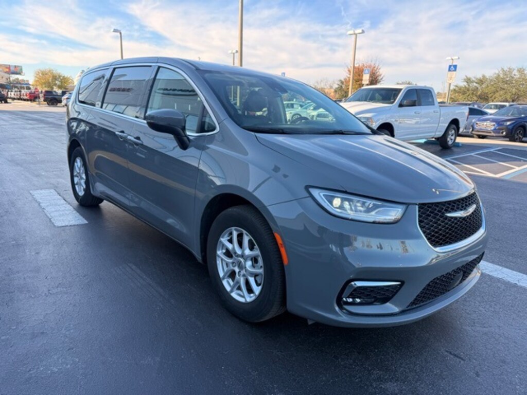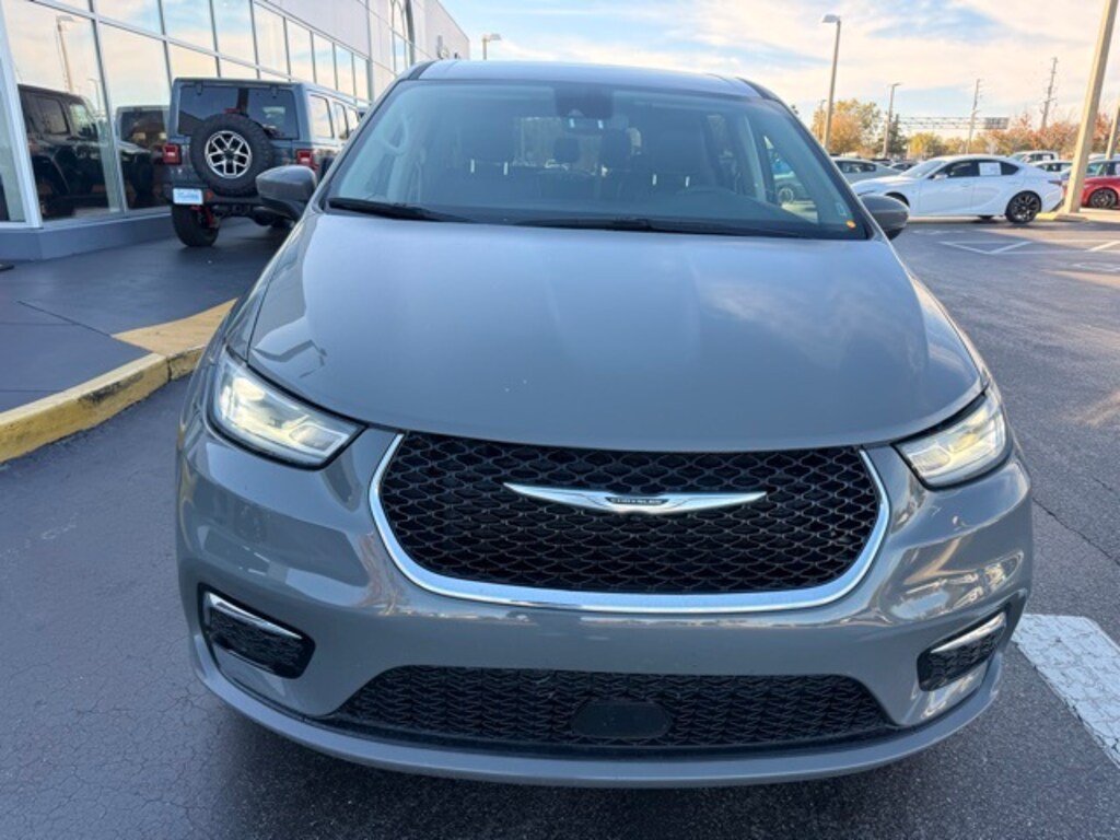 This Pacifica is well equipped with Quick Order Package 27L, 10.1" Touchscreen Display, 17" x 7.0" Aluminum Wheels, 3.25 Axle Ratio, 3rd row seats: split-bench, 4-Wheel Disc Brakes, 6 Speakers, ABS brakes, Air Conditioning, Alloy wheels, AM/FM radio: SiriusXM, Apple CarPlay, Apple CarPlay/Android Auto, Audio memory, Automatic temperature control, Black Seats, Brake assist, Bumpers: body-color, Caprice Leatherette Bucket Seats, Compass, Delay-off headlights, Disassociated Touchscreen Display, Driver door bin, Driver vanity mirror, Driver's Seat Mounted Armrest, Dual front impact airbags, Dual front side impact airbags, Electronic Stability Control, Four wheel independent suspension, Front anti-roll bar, Front Bucket Seats, Front dual zone A/C, Front Fascia Air Deflectors, Front fog lights, Front reading lights, Fully automatic headlights, Google Android Auto, GPS Antenna Input, Heated door mirrors, Heated front seats, Heated steering wheel, Illuminated entry, Integrated Active Noise Cancellation, Integrated Center Stack Radio, Knee airbag, Low tire pressure warning, Memory seat, Occupant sensing airbag, Outside temperature display, Overhead airbag, Overhead console, Panic alarm, ParkView Rear Back-Up Camera, Passenger door bin, Passenger seat mounted armrest, Passenger vanity mirror, Power door mirrors, Power driver seat, Power Liftgate, Power steering, Power windows, Radio data system, Radio: Uconnect 5 w/10.1" Display, Rain sensing wipers, Rear air conditioning, Rear reading lights, Rear window defroster, Rear window wiper, Reclining 3rd row seat, Remote keyless entry, Security system, Speed control, Split folding rear seat, Spoiler, Steering wheel mounted audio controls, Tachometer, Telescoping steering wheel, Tilt steering wheel, Touring Suspension, Traction control, Trip computer, Turn signal indicator mirrors, USB Host Flip, Variably intermittent wipers, and Voltmeter.