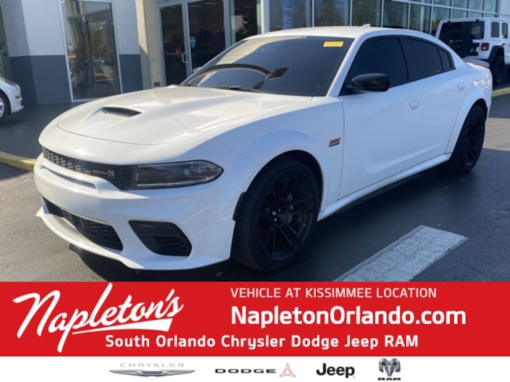 Recent Arrival! CARFAX One-Owner. White Knuckle Clearcoat 2023 Dodge Charger 4D Sedan R/T Scat Pack Widebody SRT HEMI 6.4L V8 MDS RWD Odometer is 16565 miles below market average! Clean CARFAX.