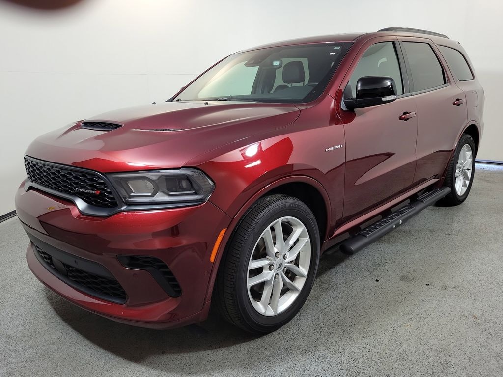This Durango is well equipped with Quick Order Package 22T R/T Plus (115V Auxiliary Power Outlet, 7 & 4 Pin Wiring Harness, Adaptive Cruise Control w/Stop, Auto-Dimming Exterior Driver Mirror, Black Roof Rails, Blind Spot w/Trailer Detection, Class IV Receiver Hitch, Dual Remote USB Port - Charge Only, Exterior Mirrors w/Heating Element, Exterior Mirrors w/Memory, Exterior Mirrors w/Supplemental Signals, Full Speed Forward Collision Warning Plus, Gloss Black Exterior Mirrors, Heated Second Row Seats, Leather Trimmed Bucket Seats, LED Auxiliary Low Beam & Turn Signal, Power 6x9 Multi-Function Foldaway Mirrors, Power 8-Way Driver Memory 8-Way Passenger Seats, Power Driver/Passenger 4-Way Lumbar Adjust, Power Sunroof, Power Tilt & Telescopic Steering Column, Radio/Driver Seat/Mirrors Memory, Red Accent Stitching, Trailer Brake Control, Ventilated Front Seats, Floor Console w/Leather Armrest, Integrated Roof Rail Crossbars, and Leather Wrapped Door Panels), Brake assist, Electronic Stability Control, Heated front seats, Mopar Black Tubular Side Steps, ParkView Rear Back-Up Camera, Power Liftgate, 3.09 Rear Axle Ratio, 3rd row seats: split-bench, 4-Wheel Disc Brakes, 9 Speakers, ABS brakes, Air Conditioning, Alloy wheels, AM/FM radio: SiriusXM w/360L, Apple CarPlay/Android Auto, Auto High-beam Headlights, Auto-dimming Rear-View mirror, Auto-leveling suspension, Automatic temperature control, Bumpers: body-color, Cloth Bucket Seats w/Shift Insert, Compass, Delay-off headlights, Driver door bin, Driver vanity mirror, Dual front impact airbags, Dual front side impact airbags, Emergency communication system, Four wheel independent suspension, Front anti-roll bar, Front Bucket Seats, Front Center Armrest w/Storage, Front dual zone A/C, Front reading lights, Fully automatic headlights, Garage door transmitter, Heated door mirrors, Heated steering wheel, Illuminated entry, Knee airbag, Leather steering wheel, Low tire pressure warning, Navigation system: TomTom, New Feature, Occupant sensing airbag, Outside temperature display, Overhead airbag, Overhead console, Panic alarm, Passenger door bin, Passenger vanity mirror, Power door mirrors, Power driver seat, Power steering, Power windows, Radio data system, Radio: Uconnect 5 Nav w/10.1" Display, Rain sensing wipers, Rear air conditioning, Rear anti-roll bar, Rear Load Leveling Suspension, Rear reading lights, Rear seat center armrest, Rear window defroster, Rear window wiper, Remote keyless entry, Security system, Speed control, Speed-sensing steering, Speed-Sensitive Wipers, Split folding rear seat, Spoiler, Sport steering wheel, Steering wheel mounted audio controls, Tachometer, Telescoping steering wheel, Tilt steering wheel, Traction control, Trip computer, Variably intermittent wipers, Voltmeter, and Wheels: 20" x 8.0" Fine Silver.