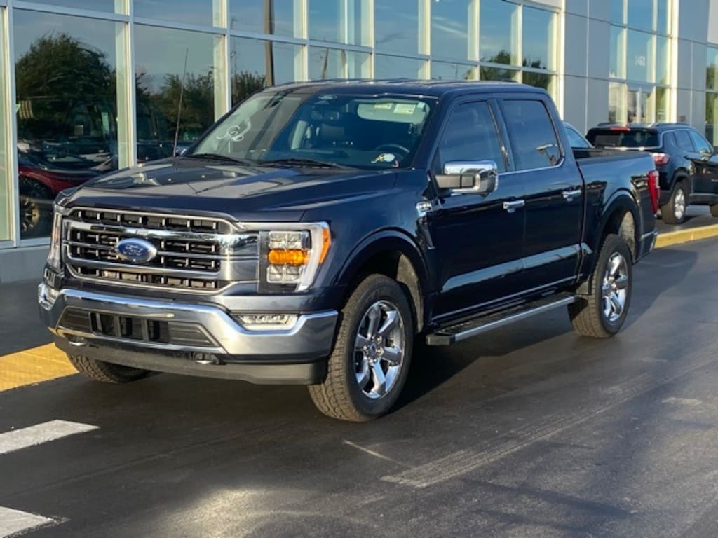 This F-150 is well equipped with Bed Utility Package (BoxLink, LED Box Lighting, Power Tailgate, and Tailgate Step w/Tailgate Work Surface), Equipment Group 501A Mid (Onboard 400W Outlet and Radio: B&O Sound System by Bang & Olufsen), FX4 Off-Road Package, Lariat Chrome Appearance Package (6" Bright Polished Running Board, Chrome 2-Bar Grille w/4 Minor Bars, Chrome Door & Tailgate Handles w/Body-Color Bezel, Chrome Single-Tip Exhaust, Chrome Skull Caps on Exterior Mirrors, and Wheels: 18" Chrome-Like PVD), Trailer Tow Package (Class IV Trailer Hitch Receiver, Integrated Trailer Brake Controller, and Pro Trailer Backup Assist), 18" Machined-Aluminum Wheels, 3.31 Axle Ratio, 360 Degree Camera, 4-Wheel Disc Brakes, 7 Speakers, ABS brakes, Adjustable pedals, Air Conditioning, Alloy wheels, AM/FM radio: SiriusXM with 360L, Auto High-beam Headlights, Auto Start-Stop Removal, Auto-dimming door mirrors, Auto-dimming Rear-View mirror, Automatic temperature control, Brake assist, Bumpers: chrome, Compass, Connected Navigation & SiriusXM w/360L Removal, Delay-off headlights, Driver door bin, Driver vanity mirror, Dual front impact airbags, Dual front side impact airbags, Electronic Locking w/3.31 Axle Ratio, Electronic Stability Control, Emergency communication system: SYNC 4 911 Assist, Extended Range 36 Gallon Fuel Tank, Exterior Parking Camera Rear, Front anti-roll bar, Front Center Armrest w/Storage, Front dual zone A/C, Front fog lights, Front reading lights, Front wheel independent suspension, Fully automatic headlights, Heated door mirrors, Heated front seats, Illuminated entry, Interior Work Surface, Leather-Trimmed 40/20/40 Front Seat, LED Sideview Mirror Spotlights, Low tire pressure warning, Memory seat, Occupant sensing airbag, Outside temperature display, Overhead airbag, Overhead console, Panic alarm, Passenger door bin, Passenger vanity mirror, Pedal memory, Power door mirrors, Power driver seat, Power passenger seat, Power steering, Power windows, Radio data system, Radio: AM/FM SiriusXM w/360L, Rear reading lights, Rear seat center armrest, Rear step bumper, Rear window defroster, Remote keyless entry, Security system, Speed control, Speed-sensing steering, Split folding rear seat, Steering wheel mounted audio controls, SYNC 4 w/Enhanced Voice Recognition, Tachometer, Telescoping steering wheel, Tilt steering wheel, Traction control, Tray Style Floor Liner, Trip computer, Turn signal indicator mirrors, Variably intermittent wipers, Ventilated front seats, Voltmeter, and Wheels: 20" Chrome-Like PVD.