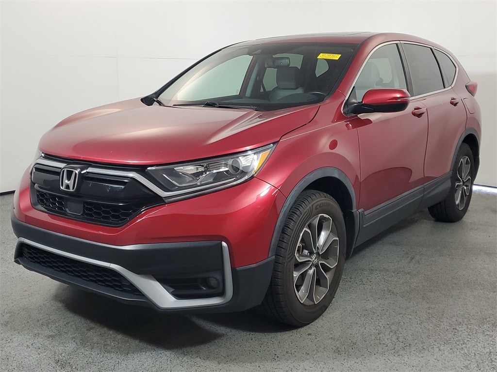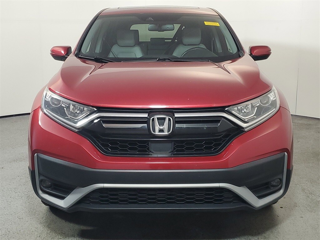 This CR-V is well equipped with AWD, Adaptive Cruise Control: Adaptive Cruise Control (ACC) with Low-Speed Follow, Apple CarPlay/Android Auto, Blind Spot Information (BSI) System warning, Brake assist, Exterior Parking Camera Rear, Forward collision: Collision Mitigation Braking System (CMBS) + FCW mitigation, Heated Front Bucket Seats, Leather Seat Trim, Power Liftgate, Power moonroof, 18" Alloy Wheels, 4-Wheel Disc Brakes, 5.64 Axle Ratio, 8 Speakers, ABS brakes, Air Conditioning, Alloy wheels, AM/FM radio: SiriusXM, Auto High-beam Headlights, Auto-dimming Rear-View mirror, Automatic temperature control, Bumpers: body-color, Compass, Delay-off headlights, Driver door bin, Driver vanity mirror, Dual front impact airbags, Dual front side impact airbags, Electronic Stability Control, Four wheel independent suspension, Front anti-roll bar, Front Bucket Seats, Front Center Armrest, Front dual zone A/C, Front fog lights, Front reading lights, Garage door transmitter: HomeLink, Heated door mirrors, Heated front seats, Illuminated entry, Leather Shift Knob, Low tire pressure warning, Memory seat, Occupant sensing airbag, Outside temperature display, Overhead airbag, Overhead console, Panic alarm, Passenger door bin, Passenger vanity mirror, Power door mirrors, Power driver seat, Power passenger seat, Power steering, Power windows, Radio data system, Radio: 180-Watt AM/FM/HD/SiriusXM Audio System, Rear anti-roll bar, Rear seat center armrest, Rear window defroster, Rear window wiper, Remote keyless entry, Security system, Speed control, Speed-sensing steering, Speed-Sensitive Wipers, Split folding rear seat, Spoiler, Steering wheel mounted audio controls, Tachometer, Telescoping steering wheel, Tilt steering wheel, Traction control, Trip computer, Turn signal indicator mirrors, and Variably intermittent wipers.