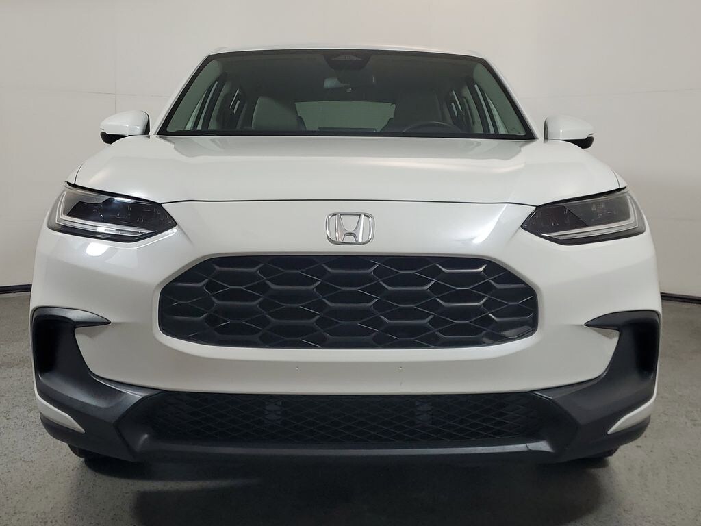 This HR-V is well equipped with Adaptive Cruise Control: Adaptive Cruise Control (ACC) with Low-Speed Follow, Apple CarPlay/Android Auto, Brake assist, Electronic Stability Control, Exterior Parking Camera Rear, 4 Speakers, 4-Wheel Disc Brakes, 5.436 Axle Ratio, ABS brakes, Air Conditioning, Alloy wheels, AM/FM radio, Auto High-beam Headlights, Automatic temperature control, Bumpers: body-color, Cloth Seat Trim, Delay-off headlights, Driver door bin, Driver vanity mirror, Dual front impact airbags, Dual front side impact airbags, Emergency communication system: HondaLink, Four wheel independent suspension, Front anti-roll bar, Front Bucket Seats, Front Center Armrest, Front reading lights, Fully automatic headlights, Illuminated entry, Knee airbag, Low tire pressure warning, Occupant sensing airbag, Outside temperature display, Overhead airbag, Panic alarm, Passenger door bin, Passenger vanity mirror, Power door mirrors, Power steering, Power windows, Radio data system, Radio: 180-Watt Audio System w/4 Speakers, Rear anti-roll bar, Rear reading lights, Rear side impact airbag, Rear window defroster, Rear window wiper, Remote keyless entry, Security system, Speed control, Speed-sensing steering, Split folding rear seat, Spoiler, Steering wheel mounted audio controls, Tachometer, Telescoping steering wheel, Tilt steering wheel, Traction control, Trip computer, Variably intermittent wipers, and Wheels: 17" Silver Painted Alloy.