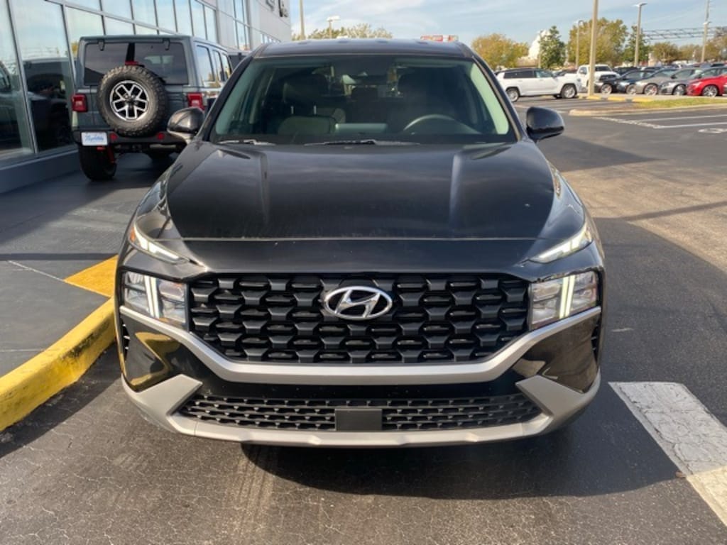 This Santa Fe is well equipped with Option Group 01, 18" x 7.5J Alloy Wheels, 4-Wheel Disc Brakes, 6 Speakers, ABS brakes, Air Conditioning, Alloy wheels, AM/FM radio, Apple CarPlay & Android Auto, Auto High-beam Headlights, Axle Ratio: 3.798, Brake assist, Bumpers: body-color, Carpeted Floor Mats, Delay-off headlights, Driver door bin, Driver vanity mirror, Dual front impact airbags, Dual front side impact airbags, Electronic Stability Control, Exterior Parking Camera Rear, Four wheel independent suspension, Front anti-roll bar, Front Bucket Seats, Front Center Armrest, Front reading lights, Fully automatic headlights, Illuminated entry, Low tire pressure warning, Occupant sensing airbag, Outside temperature display, Overhead airbag, Overhead console, Panic alarm, Passenger door bin, Passenger vanity mirror, Power door mirrors, Power steering, Power windows, Radio: AM/FM Display Audio, Rear anti-roll bar, Rear seat center armrest, Rear window defroster, Rear window wiper, Remote keyless entry, Security system, Speed control, Speed-sensing steering, Split folding rear seat, Spoiler, Steering wheel mounted audio controls, Tachometer, Telescoping steering wheel, Tilt steering wheel, Traction control, Trip computer, Variably intermittent wipers, and YES Essentials Stain-Resistant Cloth Seat Trim.