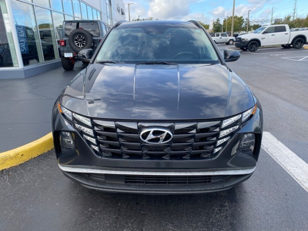 This Tucson is well equipped with Convenience Package (10.25" Digital Instrument Cluster, Auto-Dimming Interior Mirror w/Homelink, Dual Automatic Temperature Control, H-Tex Seat Trim, Leather-Wrapped Shift Knob, Leather-Wrapped Steering Wheel, LED Interior Lights (Room, Map), Option Group 02, Power Sunroof, Ultrasonic Rear Occupant Alert, and Wheels: 19" x 7.5J" Machine-Face Finish Alloy), 3.648 Axle Ratio, 4-Wheel Disc Brakes, 6 Speakers, ABS brakes, Air Conditioning, Alloy wheels, AM/FM radio: SiriusXM, Apple CarPlay & Android Auto, Auto High-beam Headlights, Brake assist, Bumpers: body-color, Cargo Cover, Carpeted Floor Mats, Delay-off headlights, Driver door bin, Driver vanity mirror, Dual front impact airbags, Dual front side impact airbags, Electronic Stability Control, Emergency communication system: Blue Link Connected Car Service (3-year complimentary subscription), Four wheel independent suspension, Front and Rear Mudguards, Front anti-roll bar, Front Bucket Seats, Front Center Armrest, Front reading lights, Fully automatic headlights, Heated door mirrors, Heated Front Bucket Seats, Heated front seats, Illuminated entry, Low tire pressure warning, Occupant sensing airbag, Outside temperature display, Overhead airbag, Overhead console, Panic alarm, Passenger door bin, Passenger vanity mirror, Power door mirrors, Power driver seat, Power Liftgate, Power steering, Power windows, Radio data system, Radio: AM/FM/HD/SiriusXM Audio System, Rear anti-roll bar, Rear Bumper Applique, Rear seat center armrest, Rear window defroster, Rear window wiper, Remote keyless entry, Roof rack: rails only, Security system, Speed control, Split folding rear seat, Spoiler, Stain & Odor Resistant Cloth Seat Trim, Steering wheel mounted audio controls, Tachometer, Telescoping steering wheel, Tilt steering wheel, Traction control, Trip computer, Turn signal indicator mirrors, Variably intermittent wipers, Wheel Locks, and Wheels: 17" x 7.0J" Alloy.