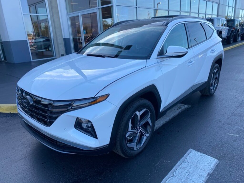 This Tucson is well equipped with Option Group 01, 3.648 Axle Ratio, 4-Wheel Disc Brakes, 8 Speakers, ABS brakes, Air Conditioning, Alloy wheels, AM/FM radio: SiriusXM, Apple CarPlay & Android Auto, Auto High-beam Headlights, Auto-dimming Rear-View mirror, Automatic temperature control, Brake assist, Bumpers: body-color, Delay-off headlights, Driver door bin, Driver vanity mirror, Dual front impact airbags, Dual front side impact airbags, Electronic Stability Control, Emergency communication system: Blue Link Connected Car Service (3-year complimentary subscription), Exterior Parking Camera Rear, Four wheel independent suspension, Front anti-roll bar, Front Bucket Seats, Front Center Armrest, Front dual zone A/C, Front reading lights, Fully automatic headlights, Garage door transmitter: HomeLink, Heated & Ventilated Front Bucket Seats, Heated door mirrors, Heated front seats, Heated rear seats, Heated steering wheel, Illuminated entry, Leather Seat Trim, Low tire pressure warning, Memory seat, Navigation System, Occupant sensing airbag, Outside temperature display, Overhead airbag, Overhead console, Panic alarm, Passenger door bin, Passenger vanity mirror, Power door mirrors, Power driver seat, Power Liftgate, Power moonroof, Power passenger seat, Power steering, Power windows, Radio data system, Radio: Bose Premium w/AM/FM/HD Audio System, Rain sensing wipers, Rear anti-roll bar, Rear reading lights, Rear seat center armrest, Rear side impact airbag, Rear window defroster, Rear window wiper, Remote keyless entry, Roof rack: rails only, Security system, Speed control, Split folding rear seat, Spoiler, Steering wheel mounted audio controls, Tachometer, Telescoping steering wheel, Tilt steering wheel, Traction control, Trip computer, Turn signal indicator mirrors, Variably intermittent wipers, Ventilated front seats, and Wheels: 19" x 7.5J" Machine-Face Finish Alloy.