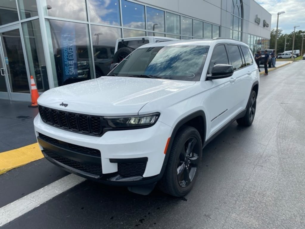 This Grand Cherokee L is well equipped with Altitude Appearance Package, Quick Order Package 22B Altitude (115V Auxiliary Power Outlet, 3rd Row Charge-Only USB Ports, Black Headliner, Bridgestone Brand Tires, Delete Laredo Badge, Gloss Black Exterior Accents, Heated Front Seats, Heated Steering Wheel, Leather Trimmed Bucket Seats, Leather Wrapped Steering Wheel, Molded In Color Black/Gloss Black Roof Rails, Power Liftgate, Rain Sensitive Windshield Wipers, Remote Start System, Selectable Tire Fill Alert, Wheels: 20" x 8.5" Gloss Black Painted Aluminum, and Wireless Charging Pad), 3.45 Rear Axle Ratio, 3rd row seats: split-bench, 4-Wheel Disc Brakes, 6 Speakers, ABS brakes, Air Conditioning, Alloy wheels, AM/FM radio, Anti-whiplash front head restraints, Apple CarPlay/Android Auto, Automatic temperature control, Brake assist, Bumpers: body-color, Cloth Seats, Compass, Delay-off headlights, Driver door bin, Driver vanity mirror, Dual front impact airbags, Dual front side impact airbags, Electronic Stability Control, Emergency communication system, Four wheel independent suspension, Front anti-roll bar, Front Bucket Seats, Front Center Armrest w/Storage, Front dual zone A/C, Front reading lights, Fully automatic headlights, Heated door mirrors, Illuminated entry, Knee airbag, Low tire pressure warning, Manual Fold Seatbacks, Normal Duty Suspension, Occupant sensing airbag, Outside temperature display, Overhead airbag, Overhead console, Panic alarm, ParkView Rear Back-Up Camera, Passenger door bin, Passenger vanity mirror, Power door mirrors, Power driver seat, Power steering, Power windows, Radio data system, Radio: Uconnect 5 w/8.4" Display, Rear air conditioning, Rear anti-roll bar, Rear reading lights, Rear window defroster, Rear window wiper, Reclining 3rd row seat, Remote keyless entry, Roof rack: rails only, Security system, Speed control, Speed-Sensitive Wipers, Split folding rear seat, Spoiler, Steering wheel mounted audio controls, Tachometer, Telescoping steering wheel, Tilt steering wheel, Traction control, Trip computer, Turn signal indicator mirrors, Variably intermittent wipers, and Wheels: 18" x 8.0" Fully Painted Aluminum.