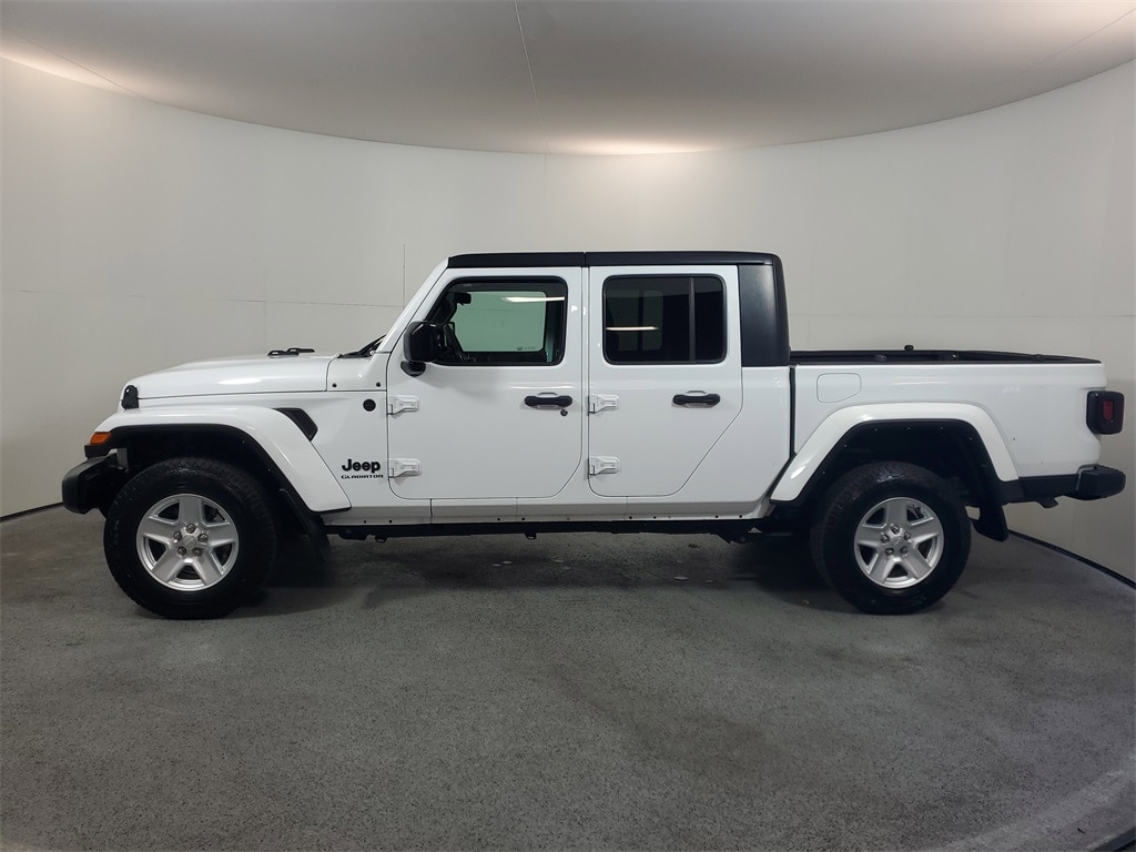 This Gladiator is well equipped with Convenience Group (Universal Garage Door Opener), Quick Order Package 24S Sport S (Sport S, Automatic Headlamps, Body Color Fender Flares (2-Piece), Daytime Running Lamp System, Deep Tint Sunscreen Windows, Front 1-Touch Down Power Windows, Leather Wrapped Steering Wheel, Normal Duty Plus Suspension, Power Heated Mirrors, Power Tailgate Lock, Remote Keyless Entry, Security Alarm, Speed Sensitive Power Locks, Sun Visors w/Illuminated Vanity Mirrors, and Wheels: 17" x 7.5" Tech Silver Aluminum), Trailer Tow Package (Class IV Receiver Hitch, Trailer Hitch Zoom, 240 Amp Alternator, and Heavy-Duty Engine Cooling), Popular Equipment Package (Black 3-Piece Hard Top), Brake assist, ParkView Rear Back-Up Camera, Radio: Uconnect 4 w/7" Display, 110 MPH Vehicle Max Speed Calibration, 3.73 Rear Axle Ratio, 4-Wheel Disc Brakes, 8 Speakers, ABS brakes, Air Conditioning, AM/FM radio, Apple CarPlay, Apple CarPlay/Android Auto, Cloth Low-Back Bucket Seats, Compass, Delay-off headlights, Driver door bin, Driver vanity mirror, Dual front impact airbags, Dual front side impact airbags, Electronic Stability Control, Emergency communication system: SiriusXM Guardian, Front anti-roll bar, Front Bucket Seats, Front Center Armrest w/Storage, Front fog lights, Front reading lights, Google Android Auto, GPS Antenna Input, Integrated Center Stack Radio, Integrated roll-over protection, Integrated Voice Command w/Bluetooth, Low tire pressure warning, MOPAR Spray In Bedliner, No Soft Top, Normal Duty Suspension, Occupant sensing airbag, Outside temperature display, Passenger door bin, Passenger vanity mirror, Power steering, Radio data system, Rear anti-roll bar, Rear reading lights, Speed control, Split folding rear seat, Steering wheel mounted audio controls, Tachometer, Telescoping steering wheel, Tilt steering wheel, Traction control, Trip computer, USB Host Flip, Variably intermittent wipers, and Wheels: 17" x 7.5" Black Steel Styled.