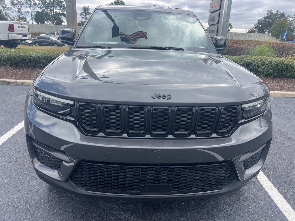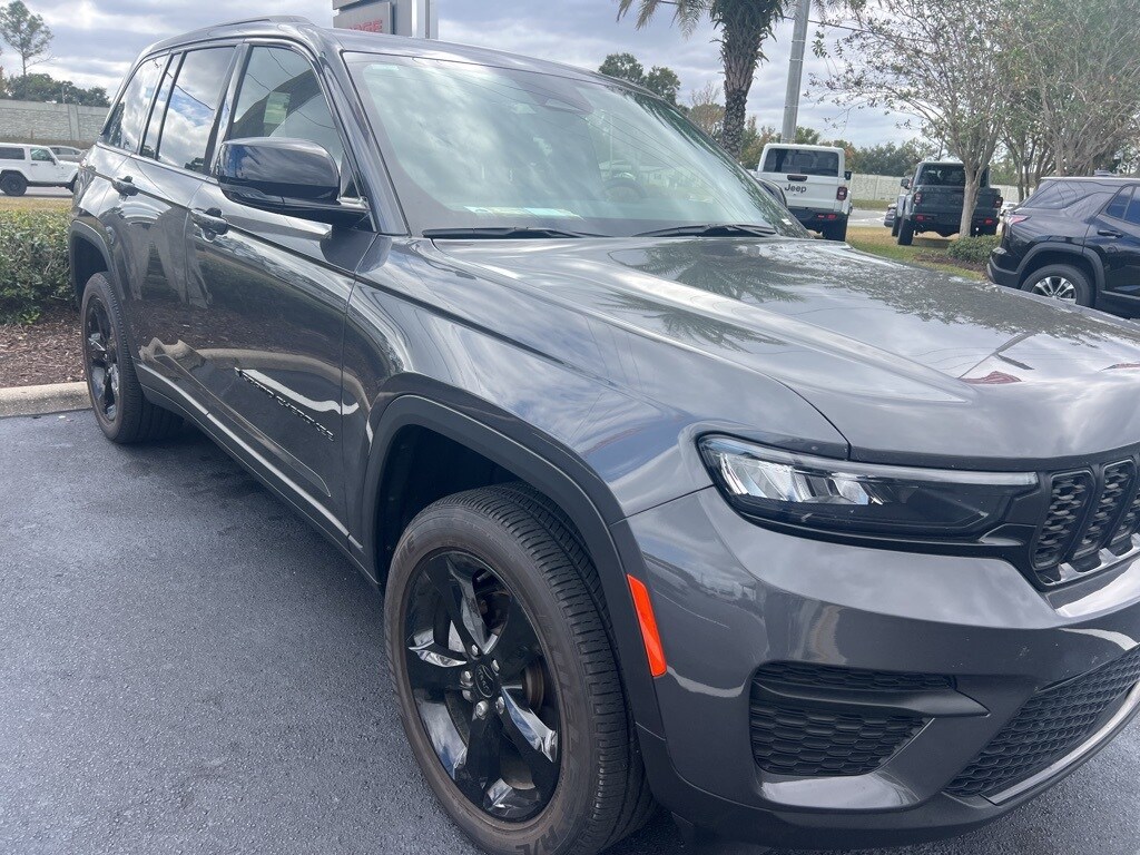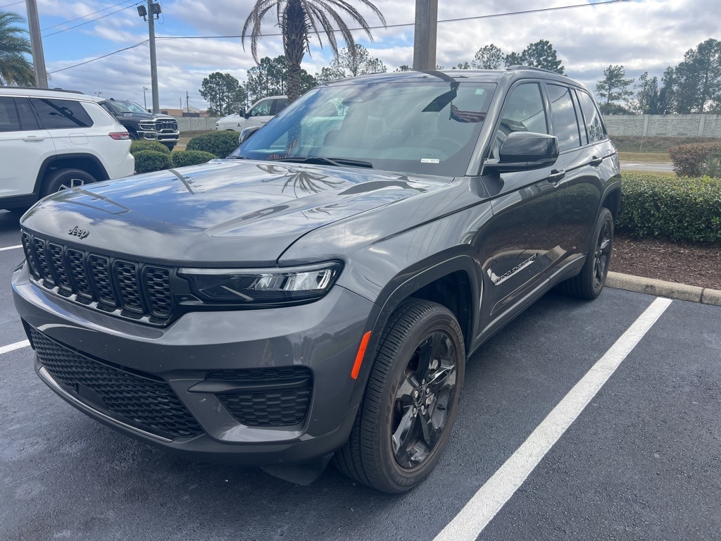 This Grand Cherokee is well equipped with Altitude Appearance Package, Quick Order Package 22B Altitude (Gloss Black Exterior Accents, Heated Front Seats, Leather Trimmed Bucket Seats, Power Liftgate, Remote Start System, Wheels: 20" x 8.5" Gloss Black Painted Aluminum, Wireless Charging Pad, 115V Auxiliary Power Outlet, Black Headliner, Delete Laredo Badge, Heated Steering Wheel, Leather Wrapped Steering Wheel, Molded In Color Black/Gloss Black Roof Rails, Rain Sensitive Windshield Wipers, and Selectable Tire Fill Alert), Brake assist, Electronic Stability Control, ParkView Rear Back-Up Camera, Power Sunroof, 3.45 Rear Axle Ratio, 4-Wheel Disc Brakes, 6 Speakers, ABS brakes, Air Conditioning, Alloy wheels, Anti-whiplash front head restraints, Automatic temperature control, Bumpers: body-color, Cloth Seats, Compass, Delay-off headlights, Driver door bin, Driver vanity mirror, Dual front impact airbags, Dual front side impact airbags, Emergency communication system, Four wheel independent suspension, Front anti-roll bar, Front Bucket Seats, Front Center Armrest w/Storage, Front dual zone A/C, Front reading lights, Fully automatic headlights, Heated door mirrors, Illuminated entry, Knee airbag, Leather steering wheel, Low tire pressure warning, Normal Duty Suspension, Occupant sensing airbag, Outside temperature display, Overhead airbag, Overhead console, Panic alarm, Passenger door bin, Passenger vanity mirror, Power door mirrors, Power driver seat, Power steering, Power windows, Radio data system, Radio: Uconnect 5 w/8.4" Display, Rear anti-roll bar, Rear reading lights, Rear window defroster, Rear window wiper, Remote keyless entry, Roof rack: rails only, Security system, Speed control, Speed-Sensitive Wipers, Split folding rear seat, Spoiler, Steering wheel mounted audio controls, Tachometer, Telescoping steering wheel, Tilt steering wheel, Traction control, Trip computer, Variably intermittent wipers, Voltmeter, and Wheels: 17" x 6.5" Fully Painted Aluminum.