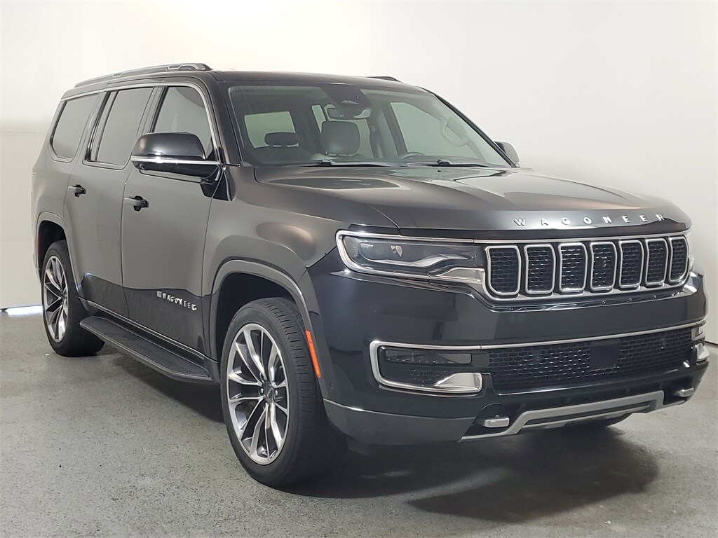 This Wagoneer is well equipped with Convenience Group I (2nd Row Manual Window Shades, Auto High Beam Headlamp Control, Drowsy Driver Detection, Heads-Up Display, Heated Second Row Seats, Intersection Collision Assist System, P&P Park & Unpark Assist w/Stop System, Surround View Camera System, and Traffic Sign Recognition), HD Trailer Tow Package (3.92 Rear Axle Ratio, Electronic Rear Limited Slip Differential, Heavy-Duty Engine Cooling, Trailer Brake Control, Trailer Hitch Line-Up Assist, Trailer Hitch Zoom, Chrome Tow Hooks, and Removable Rear Tow Hook), Flexible Seating Group (Power Tip/Slide Recline 2nd Row Buckets, 60/40 Power Recline 3rd Row Seat, 7-Passenger Seating, and Floor Console w/Cupholder), MOPAR Interior Protection Package (All-Season Floor Mats and Cargo Tray), Premium Group I (DISC) (3 Panel Sunroof, Adjustable Roof Rail Crossbars, Cargo Cover, Reversible Carpet/Vinyl Cargo Mat, and Wheels: 22" x 9.0" Premium 3 Aluminum (DISC)), Quick Order Package 22J, Adjustable pedals, Auto-leveling suspension, Brake assist, Electronic Stability Control, Exterior Parking Camera Rear, Heated front seats, Leather Trimmed Bucket Seats, Power Liftgate, Ventilated front seats, Wheels: 20" x 9.0" Aluminum Base Finish, 10 Speakers, 3rd row seats: bench, 4-Wheel Disc Brakes, ABS brakes, Air Conditioning, Alloy wheels, AM/FM radio: SiriusXM with 360L, Anti-whiplash front head restraints, Audio memory, Auto-dimming door mirrors, Auto-dimming Rear-View mirror, Automatic temperature control, Bumpers: body-color, Compass, Delay-off headlights, Driver door bin, Driver vanity mirror, Driver's Seat Mounted Armrest, Dual front impact airbags, Dual front side impact airbags, Four wheel independent suspension, Front anti-roll bar, Front Bucket Seats, Front Center Armrest w/Storage, Front dual zone A/C, Front fog lights, Front Passenger Interactive Display, Front reading lights, Fully automatic headlights, Garage door transmitter, Genuine wood console insert, Genuine wood dashboard insert, Genuine wood door panel insert, Heated door mirrors, Heated steering wheel, Illuminated entry, Knee airbag, Low tire pressure warning, Memory seat, Navigation System, Normal Duty Suspension, Occupant sensing airbag, Outside temperature display, Overhead airbag, Overhead console, Panic alarm, Passenger door bin, Passenger seat mounted armrest, Passenger vanity mirror, Pedal memory, Power adjustable front head restraints, Power door mirrors, Power driver seat, Power passenger seat, Power steering, Power windows, Radio data system, Radio: Uconnect 5 Nav w/10.1" Display, Rain sensing wipers, Rear air conditioning, Rear anti-roll bar, Rear dual zone A/C, Rear reading lights, Rear seat center armrest, Rear window defroster, Rear window wiper, Reclining 3rd row seat, Remote keyless entry, Security system, Speed control, Speed-sensing steering, Speed-Sensitive Wipers, Split folding rear seat, Steering wheel memory, Steering wheel mounted audio controls, Tachometer, Telescoping steering wheel, Tilt steering wheel, Traction