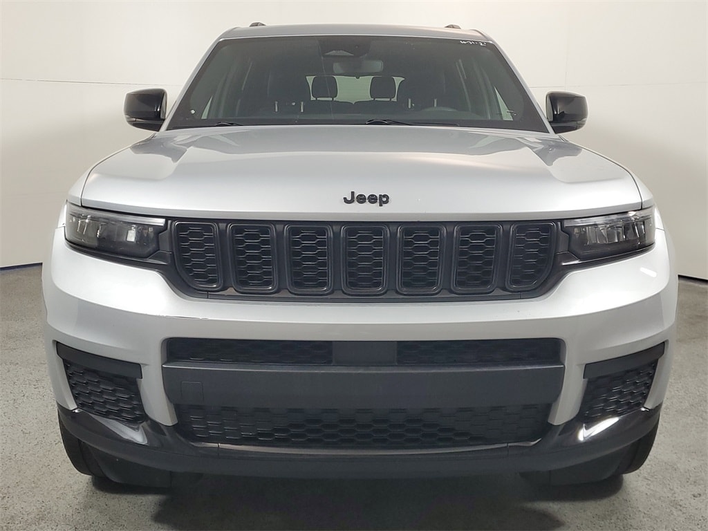 This Grand Cherokee L is well equipped with Altitude Appearance Package, Quick Order Package 23B Altitude (Capri Leatherette/Suede Seats, Gloss Black Exterior Accents, Power Liftgate, Remote Start System, Wireless Charging Pad, 115V Auxiliary Power Outlet, 3rd Row Charge-Only USB Ports, Black Headliner, Delete Laredo Badge, Heated Front Seats, Heated Steering Wheel, Molded In Color Black/Gloss Black Roof Rails, Rain Sensitive Windshield Wipers, Selectable Tire Fill Alert, and Wheels: 18" x 8.0" Fully Painted Aluminum 1), Brake assist, Electronic Stability Control, ParkView Rear Back-Up Camera, Power Sunroof (DISC), 3.45 Rear Axle Ratio, 3rd row seats: split-bench, 4-Wheel Disc Brakes, 6 Speakers, ABS brakes, Air Conditioning, Alloy wheels, Anti-whiplash front head restraints, Automatic temperature control, Bumpers: body-color, Cloth Seats, Compass, Delay-off headlights, Driver door bin, Driver vanity mirror, Dual front impact airbags, Dual front side impact airbags, Emergency communication system, Four wheel independent suspension, Front anti-roll bar, Front Bucket Seats, Front Center Armrest w/Storage, Front dual zone A/C, Front reading lights, Fully automatic headlights, Heated door mirrors, Illuminated entry, Knee airbag, Low tire pressure warning, Manual Fold Seatbacks, Normal Duty Suspension, Occupant sensing airbag, Outside temperature display, Overhead airbag, Overhead console, Panic alarm, Passenger door bin, Passenger vanity mirror, Power door mirrors, Power driver seat, Power steering, Power windows, Radio data system, Radio: Uconnect 5 w/8.4" Display, Rear air conditioning, Rear anti-roll bar, Rear reading lights, Rear window defroster, Rear window wiper, Reclining 3rd row seat, Remote keyless entry, Security system, Speed control, Speed-Sensitive Wipers, Split folding rear seat, Spoiler, Steering wheel mounted audio controls, Tachometer, Telescoping steering wheel, Tilt steering wheel, Traction control, Trip computer, Variably intermittent wipers, Voltmeter, Wheels: 18" x 8.0" Fully Painted Aluminum, and Wheels: 20" x 8.5" Gloss Black Painted Aluminum.