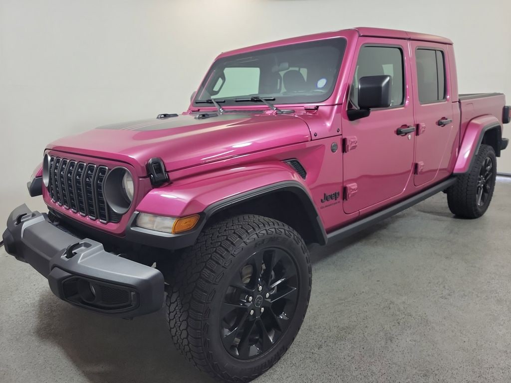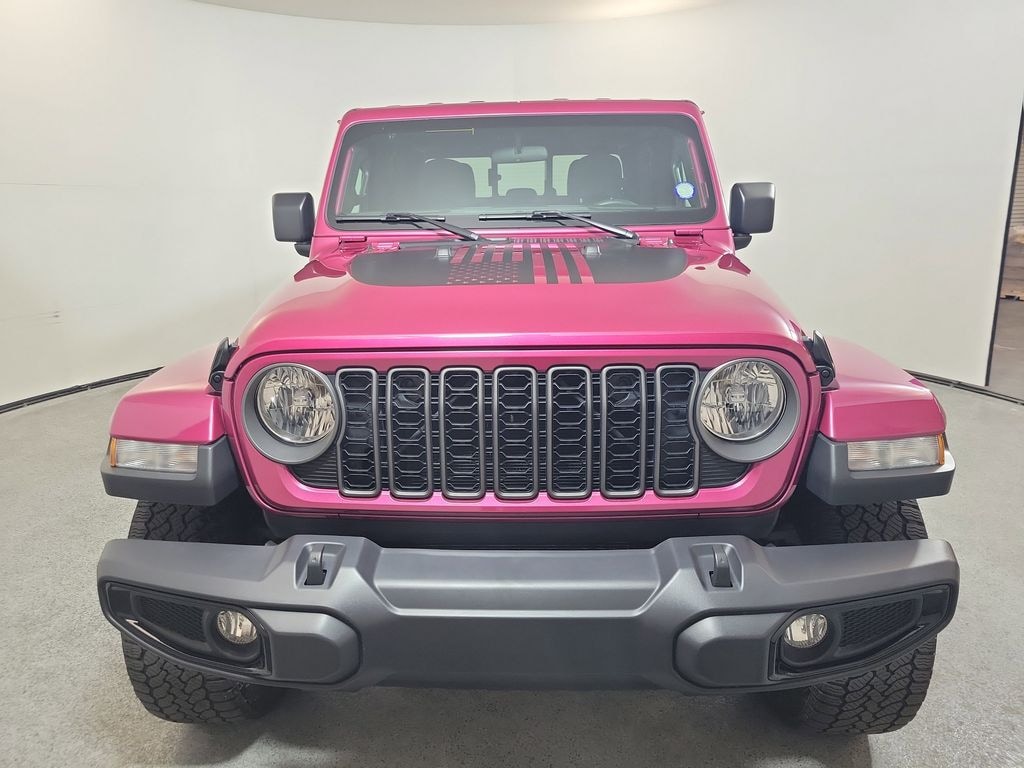 This Gladiator is well equipped with Quick Order Package 24X Nighthawk (110 MPH Vehicle Max Speed Calibration, Body Color 3-Piece Hard Top, Body Color Fender Flares (2-Piece), Dana M210 Wide Front Axle, Dana M220 Wide Rear Axle, Daytime Running Lamp System, Freedom Panel Storage Bag, Front 1-Touch Down Power Windows, Mold In Color Bumper w/Gloss Black, Power Heated Mirrors, Power Tailgate Lock, Remote Keyless Entry, Speed Sensitive Power Locks, Sport Rear Shock Absorbers, Sport Suspension, Wheels: 20" x 8" Painted Black Aluminum, Anti-Spin Differential Rear Axle, Deep Tint Sunscreen Windows, Protection Sill Rails, Rear Sliding Window, and Rear Window Defroster), 12.3" Touchscreen Display, 4G LTE Wi-Fi Hot Spot, Alexa Built-In, Apple CarPlay, Apple CarPlay/Android Auto, Brake assist, Electronic Stability Control, MOPAR Hard Tri-Fold Tonneau Cover, ParkView Rear Back-Up Camera, Radio: Uconnect 5 w/12.3" Display, 3.73 Rear Axle Ratio, 4-Wheel Disc Brakes, 8 Speakers, ABS brakes, Air Conditioning, AM/FM radio: SiriusXM with 360L, Cloth Low-Back Bucket Seats, Compass, Connectivity - US/Canada, Delay-off headlights, Disassociated Touchscreen Display, Driver door bin, Driver vanity mirror, Dual front impact airbags, Dual front side impact airbags, Emergency communication system: Jeep Connect, Front anti-roll bar, Front Bucket Seats, Front Center Armrest w/Storage, Front fog lights, Front reading lights, Google Android Auto, Integrated Center Stack Radio, Integrated roll-over protection, Low tire pressure warning, Manufacturer's Statement of Origin (DISC), MOPAR All-Weather Slush Mats, MOPAR American Flag Hood Decal, MOPAR Plastic Door Sill Guards, MOPAR Spray In Bedliner, Normal Duty Suspension, Occupant sensing airbag, Outside temperature display, Overhead airbag, Passenger door bin, Passenger vanity mirror, Power steering, Radio data system, Rear anti-roll bar, Rear reading lights, SiriusXM Radio Service, SiriusXM w/360L, Speed control, Split folding rear seat, Steering wheel mounted audio controls, Tachometer, Telescoping steering wheel, Tilt steering wheel, Traction control, Trip computer, USB Host Flip, Variably intermittent wipers, Voltmeter, and Wheels: 17" x 7.5" Black Steel Styled.