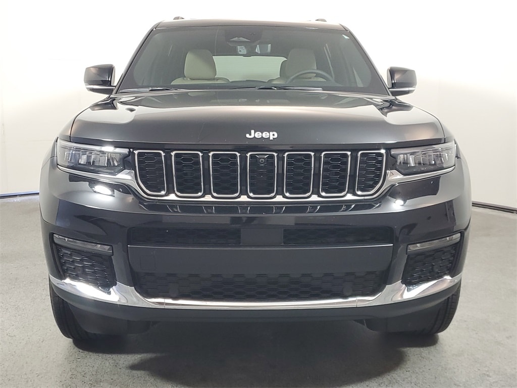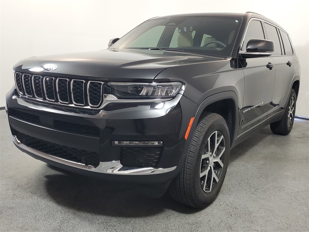 This Grand Cherokee L is well equipped with Luxury Tech Group II (2nd Row Manual Window Shades, Capri Leatherette w/Axis II Seats, Integrated Off-Road Camera, Intersection Collision Assist System, ParkSense Front/Rear Park Assist w/Stop, Passive Entry - Front/Rear Doors, Liftgate, Rear Back Up Camera Washer, Surround View Camera System, Ventilated Front Seats, Wireless Charging Pad, Auto-Dimming Exterior Driver Mirror, Memory Steering Column, Power Tilt/Telescope Steering Column, Rain Sensitive Windshield Wipers, and Rearview Autodim Digital Display Mirror), Trailer Tow Package (7 & 4 Pin Wiring Harness, Class IV Receiver Hitch, Rear Load Leveling Suspension, Trailer Hitch Zoom, 220 Amp Alternator, Automatic Headlamp Leveling System, Dual Exhaust Tips, and Heavy-Duty Engine Cooling), Quick Order Package 23E, Brake assist, Dual-Pane Panoramic Sunroof, Electronic Stability Control, Heated front seats, Heated rear seats, Interior Rear Facing Camera, Navigation System, ParkView Rear Back-Up Camera, Power Liftgate, 3.45 Rear Axle Ratio, 3rd row seats: split-bench, 4-Wheel Disc Brakes, 6 Speakers, ABS brakes, Active Noise Control System, Air Conditioning, Alloy wheels, AM/FM radio: SiriusXM with 360L, Anti-whiplash front head restraints, Audio memory, Auto High-beam Headlights, Automatic temperature control, Bumpers: body-color, Capri Leatherette Seats, Compass, Delay-off headlights, Driver door bin, Driver vanity mirror, Dual front impact airbags, Dual front side impact airbags, Emergency communication system, Four wheel independent suspension, Front anti-roll bar, Front Bucket Seats, Front Center Armrest w/Storage, Front dual zone A/C, Front fog lights, Front reading lights, Fully automatic headlights, Garage door transmitter, Heated door mirrors, Heated steering wheel, Illuminated entry, Knee airbag, Low tire pressure warning, Manual Fold Seatbacks, Memory seat, Normal Duty Suspension, Occupant sensing airbag, Outside temperature display, Overhead airbag, Overhead console, Panic alarm, Passenger door bin, Passenger vanity mirror, Power door mirrors, Power driver seat, Power passenger seat, Power steering, Power windows, Radio data system, Radio: Uconnect 5 Nav w/10.1" Display, Rear air conditioning, Rear anti-roll bar, Rear reading lights, Rear window defroster, Rear window wiper, Reclining 3rd row seat, Remote keyless entry, Security system, Speed control, Speed-Sensitive Wipers, Split folding rear seat, Spoiler, Steering wheel mounted audio controls, Tachometer, Telescoping steering wheel, Tilt steering wheel, Traction control, Trip computer, Turn signal indicator mirrors, Variably intermittent wipers, Voltmeter, and Wheels: 18" x 8.0" Polished/Painted Aluminum.