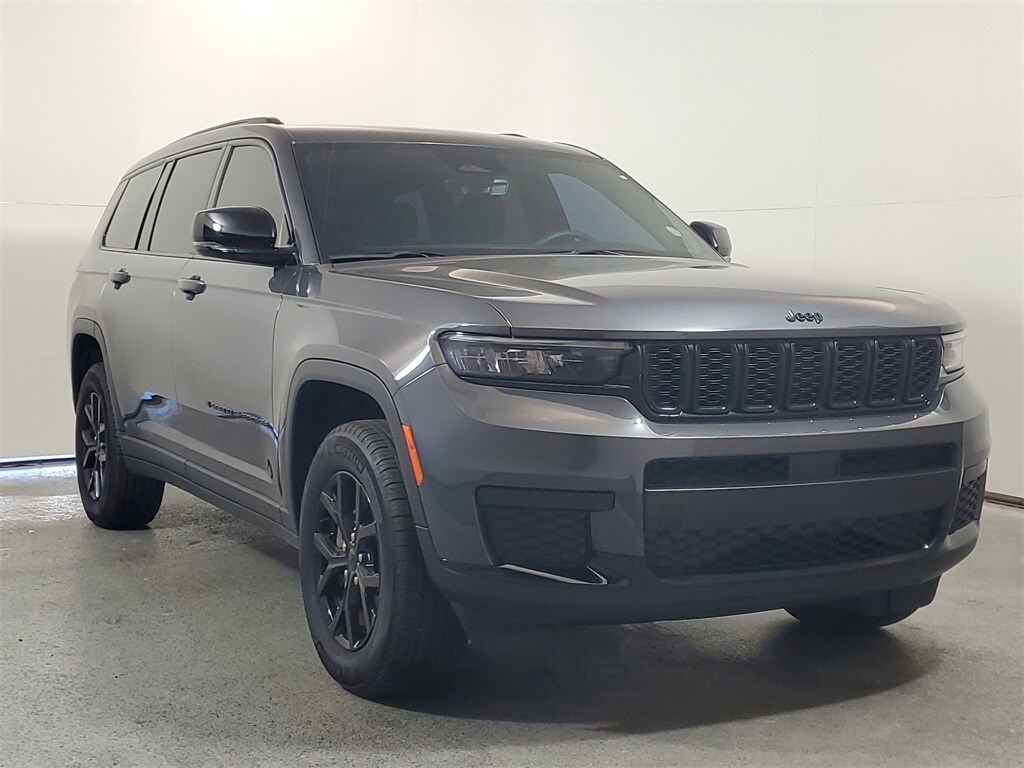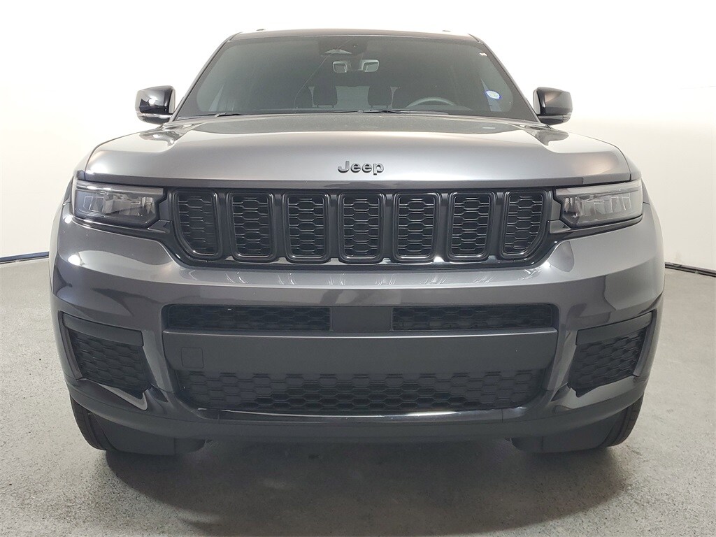 This Grand Cherokee L is well equipped with Altitude Appearance Package, Quick Order Package 23B Altitude (115V Auxiliary Power Outlet, 3rd Row Charge-Only USB Ports, Black Headliner, Capri Leatherette/Suede Seats, Gloss Black Exterior Accents, Heated Front Seats, Heated Steering Wheel, Power Liftgate, Remote Start System, Wheels: 18" x 8.0" Fully Painted Aluminum 1, Wireless Charging Pad, Delete Laredo Badge, Rain Sensitive Windshield Wipers, and Selectable Tire Fill Alert), Brake assist, Electronic Stability Control, ParkView Rear Back-Up Camera, 3.45 Rear Axle Ratio, 3rd row seats: split-bench, 4-Wheel Disc Brakes, 6 Speakers, ABS brakes, Air Conditioning, Alloy wheels, AM/FM radio: SiriusXM, Anti-whiplash front head restraints, Automatic temperature control, Bumpers: body-color, Cloth Seats, Compass, Delay-off headlights, Driver door bin, Driver vanity mirror, Dual front impact airbags, Dual front side impact airbags, Emergency communication system, Four wheel independent suspension, Front anti-roll bar, Front Bucket Seats, Front Center Armrest w/Storage, Front dual zone A/C, Front reading lights, Fully automatic headlights, Heated door mirrors, Illuminated entry, Knee airbag, Low tire pressure warning, Manual Fold Seatbacks, Model Year Tracking, Normal Duty Suspension, Occupant sensing airbag, Outside temperature display, Overhead airbag, Overhead console, Panic alarm, Passenger door bin, Passenger vanity mirror, Power door mirrors, Power driver seat, Power steering, Power windows, Radio data system, Radio: Uconnect 5 w/8.4" Display, Rear air conditioning, Rear anti-roll bar, Rear reading lights, Rear window defroster, Rear window wiper, Reclining 3rd row seat, Remote keyless entry, Security system, Speed control, Speed-Sensitive Wipers, Split folding rear seat, Spoiler, Steering wheel mounted audio controls, Tachometer, Telescoping steering wheel, Tilt steering wheel, Traction control, Trip computer, Variably intermittent wipers, Voltmeter, and Wheels: 18" x 8.0" Fully Painted Aluminum.