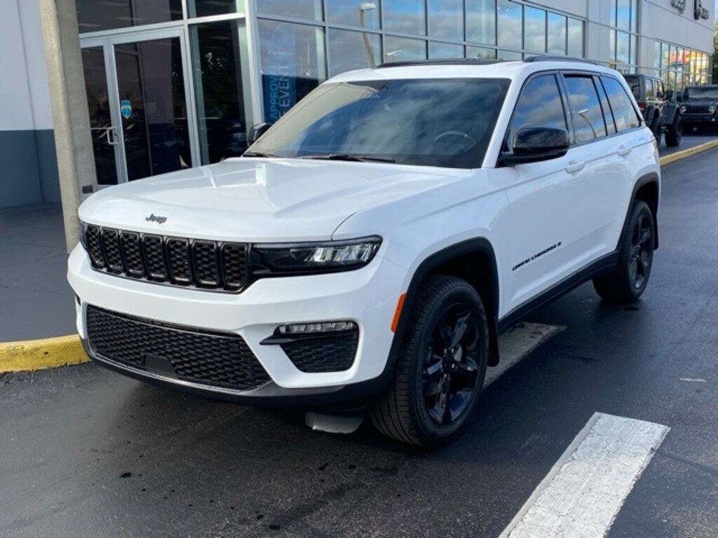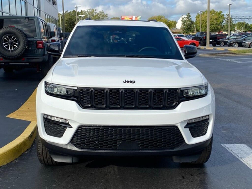 This Grand Cherokee is well equipped with Black Appearance Package (Wheels: 20" x 8.5" Gloss Black Painted Aluminum), Quick Order Package 22E, 4-Wheel Disc Brakes, 6 Speakers, ABS brakes, Active Noise Control System, Air Conditioning, Alloy wheels, AM/FM radio: SiriusXM with 360L, Anti-whiplash front head restraints, Audio memory, Auto High-beam Headlights, Automatic temperature control, Brake assist, Bumpers: body-color, Capri Leatherette Seats, Compass, Delay-off headlights, Driver door bin, Driver vanity mirror, Dual front impact airbags, Dual front side impact airbags, Dual-Pane Panoramic Sunroof, Electronic Stability Control, Emergency communication system, Four wheel independent suspension, Front anti-roll bar, Front Bucket Seats, Front Center Armrest w/Storage, Front dual zone A/C, Front fog lights, Front reading lights, Fully automatic headlights, Garage door transmitter, Heated door mirrors, Heated front seats, Heated rear seats, Heated steering wheel, Illuminated entry, Knee airbag, Low tire pressure warning, Memory seat, Model Year Tracking, Navigation System, Normal Duty Suspension, Occupant sensing airbag, Outside temperature display, Overhead airbag, Overhead console, Panic alarm, ParkView Rear Back-Up Camera, Passenger door bin, Passenger vanity mirror, Power door mirrors, Power driver seat, Power Liftgate, Power passenger seat, Power steering, Power windows, Radio data system, Radio: Uconnect 5 Nav w/10.1" Display, Rear anti-roll bar, Rear reading lights, Rear window defroster, Rear window wiper, Remote keyless entry, Security system, Speed control, Speed-Sensitive Wipers, Split folding rear seat, Spoiler, Steering wheel mounted audio controls, Tachometer, Telescoping steering wheel, Tilt steering wheel, Traction control, Trip computer, Turn signal indicator mirrors, Variably intermittent wipers, Voltmeter, and Wheels: 18" x 8" Polished/Painted Aluminum.