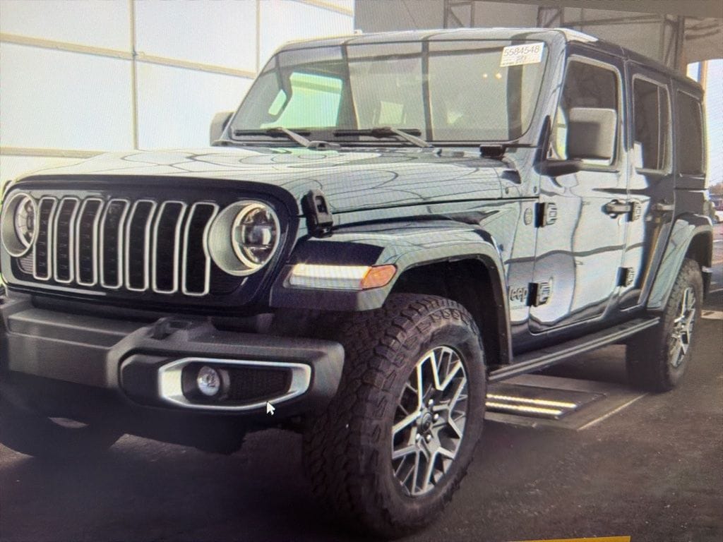 This Wrangler is well equipped with Dual Top Group (Body Color 3-Piece Hard Top, Freedom Panel Storage Bag, Premium Black Sunrider Soft Top w/Dual Top Group, Rear Window Defroster, and Rear Window Wiper/Washer), Safety Group (Auto High Beam Headlamp Control, Blind Spot & Cross Path Detection, and ParkSense Rear Park Assist System), Technology Group (12.3" Touchscreen Display, 4G LTE Wi-Fi Hot Spot, Apple CarPlay, Google Android Auto, GPS Navigation, Integrated Off-Road Camera, Integrated Voice Command w/Bluetooth, Radio: Uconnect 5 Nav w/12.3" Display, SiriusXM w/360L, Auto-Dimming Rear-View Mirror, Connected Travel & Traffic Services, Connectivity - US/Canada, HD Radio, SiriusXM Radio Service, and Universal Garage Door Opener), Quick Order Package 22G Sahara, Alpine Premium Audio System, Brake assist, Electronic Stability Control, ParkView Rear Back-Up Camera, 110 MPH Vehicle Max Speed Calibration, 3.45 Overall Top Gear Ratio, 4-Wheel Disc Brakes, 8 Speakers, ABS brakes, Air Conditioning, Alloy wheels, AM/FM radio: SiriusXM, Apple CarPlay/Android Auto, Automatic temperature control, Aux Battery, Cloth Low-Back Bucket Seats, Compass, Delay-off headlights, Driver door bin, Driver vanity mirror, Dual front impact airbags, Dual front side impact airbags, Emergency communication system: Jeep Connect, Front anti-roll bar, Front Bucket Seats, Front Center Armrest w/Storage, Front dual zone A/C, Front fog lights, Front reading lights, Fully automatic headlights, Heated door mirrors, Heated front seats, Heated steering wheel, Heavy Duty Suspension w/Gas Shocks, Illuminated entry, Integrated Center Stack Radio, Integrated roll-over protection, Low tire pressure warning, MOPAR All-Weather Floor Mats, MOPAR Cargo Tub Liner, MOPAR Stainless Door Sill Guards, Non-Lock Fuel Cap w/o Discriminator, Occupant sensing airbag, Outside temperature display, Overhead airbag, Panic alarm, Passenger door bin, Passenger vanity mirror, Power door mirrors, Power steering, Power windows, Radio data system, Radio: Uconnect 5 w/12.3" Display, Rear anti-roll bar, Rear reading lights, Remote keyless entry, Security system, Soft Top Window Storage Bag, Speed control, Split folding rear seat, Steering wheel mounted audio controls, Stop-Start Dual Battery System, Tachometer, Telescoping steering wheel, Tilt steering wheel, Traction control, Trip computer, Variably intermittent wipers, Voltmeter, and Wheels: 18" x 7.5" Machine/Painted Gray.