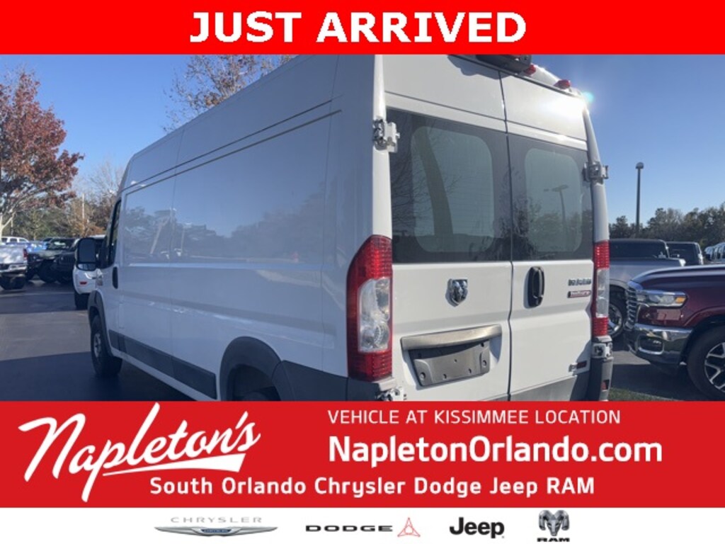 This ProMaster 2500 is well equipped with Cargo Convenience Group (Cargo Net and Side Wall Cargo Tie Down Rings), Interior Convenience Group (Locking Glove Box, Shelf Above Roof Trim, and Windshield Document Holder), Quick Order Package 23A, 12V Rear Auxiliary Power Outlet, 220 Amp Alternator, 3.43 Axle Ratio, 4 Speakers, 4-Wheel Disc Brakes, ABS brakes, Air Conditioning, AM/FM radio, Bodyside moldings, Brake assist, Cloth Bucket Seats, Daytime Running Headlamps, Dealer Activated Speed Limiter, DOT Certified Roadside Safety Kit, Driver door bin, Driver/Passenger 6-Way Adjustable Lumbar Seats, Dual front impact airbags, Dual front side impact airbags, Electronic Stability Control, Front anti-roll bar, Front Bucket Seats, Front License Plate Bracket, Front reading lights, Front wheel independent suspension, Heavy Duty Suspension, Illuminated entry, Integrated Voice Command w/Bluetooth, Low tire pressure warning, Media Input Hub, Outside temperature display, Overhead airbag, ParkSense Rear Park Assist System, ParkView Rear Back-Up Camera, Passenger door bin, Power Folding/Heated Mirrors, Power steering, Power windows, Radio: AM/FM/MP3, Radio: Uconnect 5.0 AM/FM/CD/BT, Rear Hinged Doors w/Fixed Glass, Rear Window Defroster, Remote keyless entry, Steering Wheel Mounted Audio Controls, Tachometer, Telescoping steering wheel, Traction control, Trip computer, Turn signal indicator mirrors, Uconnect Voice Command w/Bluetooth, Upfit Interface Connectors, Variably intermittent wipers, and Wheels: 16" x 6.0" Steel.