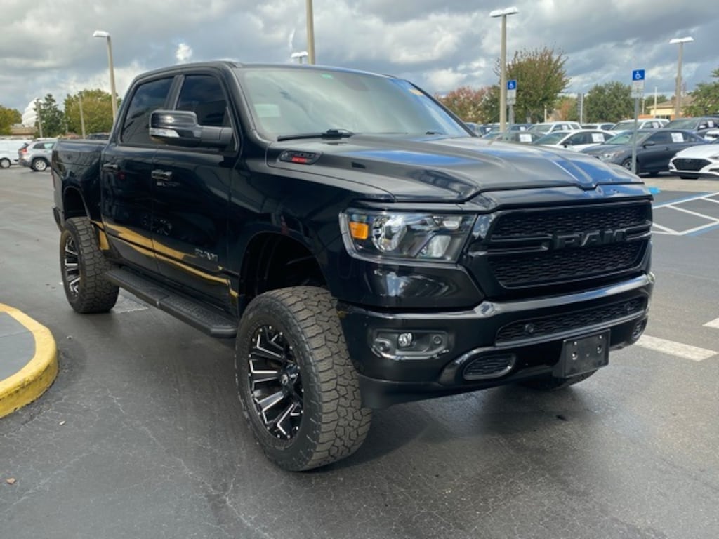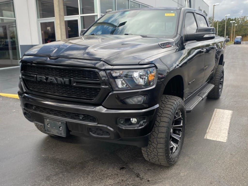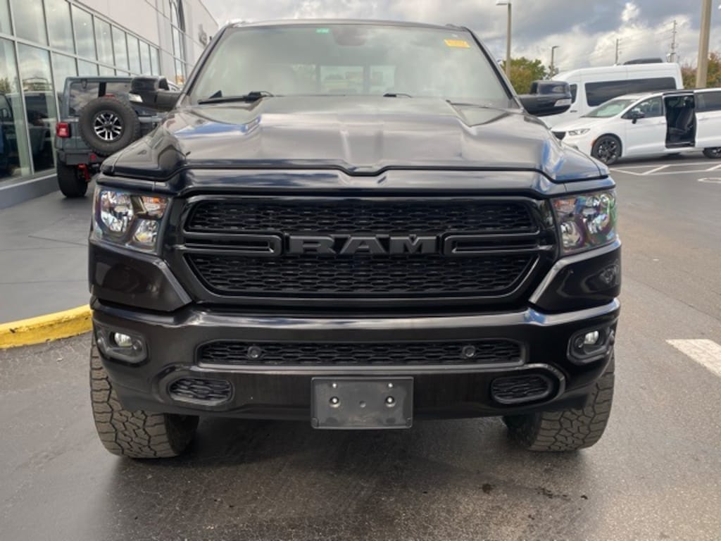 This 1500 is well equipped with Bed Utility Group (MOPAR 4 Adjustable Cargo Tie-Down Hooks, MOPAR Deployable Bed Step, MOPAR Spray In Bedliner, and Pick-Up Box Lighting), Big Horn Level 2 Equipment Group (115V Auxiliary Power Outlet, 115V Auxiliary Rear Power Outlet, 2nd Row In Floor Storage Bins, 400W Inverter, Air Conditioning ATC w/Dual Zone Control, Auto-Dimming Exterior Driver Mirror, Auto-Dimming Rear-View Mirror, Black Premium Power Mirrors, Class IV Receiver Hitch, Cluster 7.0" TFT Color Display, Exterior Mirrors Courtesy Lamps, Exterior Mirrors w/Supplemental Signals, Foam Bottle Insert (Door Trim Panel), For More Info, Call 800-643-2112, Glove Box Lamp, Heated Front Seats, Heated Steering Wheel, Media Hub w/2 Charge Only USBs, ParkSense Front/Rear Park Assist w/Stop, Power 4-Way Driver Lumbar Adjust, Power 8-Way Driver Seat, Power Adjustable Pedals, Power-Folding Mirrors, Rear Dome w/On/Off Switch Lamp, Rear Power Sliding Window, Rear Window Defroster, Security Alarm, SiriusXM Radio Service, Sun Visors w/Illuminated Vanity Mirrors, and Universal Garage Door Opener), Night Edition (3 Rear Seat Head Restraints, 4 Way Front Headrests, Accent Color Premium Power Mirrors, Anti-Spin Differential Rear Axle, Black Exterior Truck Badging, Black Headlamp Bezels, Black Interior Accents, Black Painted Exterior Mirrors Caps, Body Color Front Bumper, Body Color Rear Bumper w/Step Pads, Bucket Seats, Center Console Parts Module, Deluxe Cloth Bucket Seats, Dual Exhaust w/Black Tips, Exterior Mirrors w/Memory, Front Seat Back Map Pockets, Full Length Floor Console, Manual Adjust 4-Way Front Passenger Seat, Rear 60/40 Folding Seat, and Wheels: 20" x 9.0" Premium Paint/Polished), Quick Order Package 28Z Big Horn (Big Horn Badge), 1-Yr SiriusXM Guardian Trial, 12" Touchscreen Display, 3.21 Rear Axle Ratio, 4-Wheel Disc Brakes, 40/20/40 Split Bench Seat, 48V Belt Starter Generator, 4G LTE Wi-Fi Hot Spot, 5-Year SiriusXM Traffic Service, 5-Year SiriusXM Travel Link Service, 6 Speakers, 9 Amplified Speakers w/Subwoofer, ABS brakes, Air Conditioning, Alloy wheels, AM/FM radio, Apple CarPlay, Black Exterior Mirrors, Blind Spot & Cross Path Detection, Brake assist, Bumpers: chrome, Cloth Bench Seat, Compass, Delay-off headlights, Disassociated Touchscreen Display, Driver door bin, Dual front impact airbags, Dual front side impact airbags, Electronic Stability Control, Exterior 115V AC Outlet, For Details, Visit DriveUconnect.com, Front anti-roll bar, Front Center Armrest w/Storage, Front fog lights, Front reading lights, Front wheel independent suspension, Fully automatic headlights, Google Android Auto, GPS Antenna Input, GPS Navigation, HD Radio, Heated door mirrors, Illuminated entry, Integrated Center Stack Radio, Integrated Voice Command w/Bluetooth, Leather steering wheel, LED Footwell Lighting, LED Taillamps, Low tire pressure warning, Manufacturer's Statement of Origin, Mopar Black Tubular Side Steps, MOPAR Front & Rear Rubber Floor Mats, Multi-Function Tailgate, Occupant sensing airbag, Outside temperature display, Overhead airbag, Overhead console, Panic alarm, ParkView Rear Back-Up Camera, Passenger door bin, Passenger vanity mirror, Power door mirrors, Power steering, Power windows, Radio data system, Radio: Uconnect 12 w/Navigation, Radio: Uconnect 3 w/5" Display, RamBox Cargo Management System, Rear anti-roll bar, Rear seat center armrest, Rear step bumper, Remote keyless entry, Remote Start System, SiriusXM Satellite Radio, SiriusXM Traffic Plus, SiriusXM Travel Link, SiriusXM w/360L, Speed control, Split folding rear seat, Steering wheel mounted audio controls, Tachometer, Telescoping steering wheel, Tilt steering wheel, Traction control, Trailer Brake Control, Trip computer, USB Host Flip, Variably intermittent wipers, Voltmeter, and Wheels: 18" x
