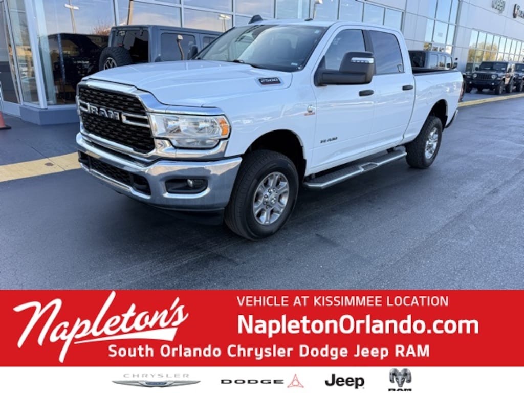 This 2500 is well equipped with Level 1 Equipment Group (2 Way Rear Headrest Seat, 2nd Row In Floor Storage Bins, 4 Way Front Headrests, 40/20/40 Split Bench Seat, 4G LTE Wi-Fi Hot Spot, 8.4" Touchscreen Display, Apple CarPlay, Auto Power-Folding Mirrors, Big Horn IP Badge, Black Exterior Mirrors, Bluetooth Handsfree Phone & Audio, Center Hub, Connectivity - US/Canada, Dual Glove Boxes, Exterior Mirrors Courtesy Lamps, Exterior Mirrors w/Heating Element, Exterior Mirrors w/Supplemental Signals, Foam Bottle Insert (Door Trim Panel), Footwell Courtesy Lamp, For Details, Visit DriveUconnect.com, For More Info, Call 800-643-2112, Forward & Reverse Utility Lights, Front Armrest w/Cupholders, Front Center Seat Cushion Storage, Front Fog Lamps, Global Telematics Box Module (TBM), Glove Box Lamp, Google Android Auto, GPS Antenna Input, Integrated Center Stack Radio, Integrated Voice Command w/Bluetooth, Leather Wrapped Steering Wheel, Locking Lower Glove Box, Mirror Running Lights, Power 2-Way Driver Lumbar Adjust, Power Adjust Mirrors, Power Adjustable Convex Aux Mirrors, Power Heated Fold Telescope Mirrors, Power Telescoping Mirrors, Radio: Uconnect 5 W w/8.4" Display (A62), Rear Dome w/On/Off Switch Lamp, Remote USB Port - Charge Only, Selectable Tire Fill Alert, SiriusXM Radio Service, SiriusXM Satellite Radio, Steering Wheel Mounted Audio Controls, Storage Tray, and Wheels: 18" x 8.0" Polished Aluminum), Level 1 Equipment Group w/2Y, Quick Order Package 2HZ Big Horn, 3.73 Axle Ratio, 4-Wheel Disc Brakes, 6 Speakers, ABS brakes, Active Noise Control System, Air Conditioning, Anti-Spin Differential Rear Axle, Brake assist, Bumpers: chrome, Center Stack Storage Drawer, Chrome Flat Cab-Length Side Steps, Cloth 40/20/40 Bench Seat, Compass, Delay-off headlights, Driver door bin, Dual front impact airbags, Dual front side impact airbags, Electronic Stability Control, Electronically Controlled Throttle, Emergency communication system: SiriusXM Guardian, Front anti-roll bar, Front Center Armrest w/Storage, Front License Plate Bracket, Front reading lights, Fully automatic headlights, Heated door mirrors, Illuminated entry, Low tire pressure warning, Manual Adjust 4-Way Driver Seat, Manufacturer's Statement of Origin, Occupant sensing airbag, Outside temperature display, Overhead airbag, Overhead console, Panic alarm, ParkView Rear Back-Up Camera, Passenger door bin, Passenger vanity mirror, Power door mirrors, Power steering, Power windows, Premium Cloth 40/20/40 Bench Seat (DISC), Radio data system, Radio: Uconnect 3 w/5" Display, Radio: Uconnect 5 W w/8.4" Display, Rear anti-roll bar, Rear Folding Seat, Rear seat center armrest, Rear step bumper, Remote keyless entry, Speed control, Tachometer, Tilt steering wheel, Tip Start, Tow Hooks, Traction control, Trip computer, Turn signal indicator mirrors, Variably intermittent wipers, Voltmeter, and Wheels: 18" x 8.0" Steel Chrome Clad.
