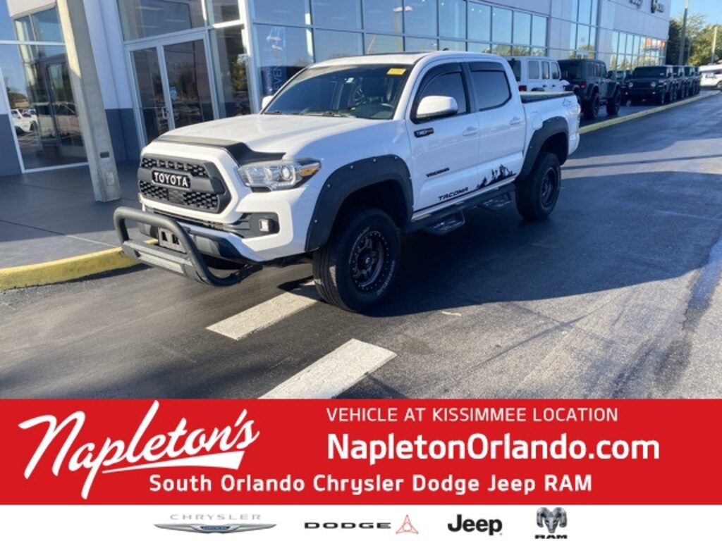 This Tacoma is well equipped with 120V/400W Deck Mounted AC Power, 6 Speakers, ABS brakes, Air Conditioning, Alloy wheels, AM/FM radio: SiriusXM, Anti-whiplash front head restraints, Auto High-beam Headlights, Auto-Dimming Inside Rear-View Mirror w/Compass, Auto-dimming Rear-View mirror, Axle Ratio: 3.91, Black Overfenders, Brake assist, Bumpers: body-color, CD player, Driver door bin, Dual front impact airbags, Dual front side impact airbags, Electronic Stability Control, Engine Immobilizer, Entune App Suite, Exterior Parking Camera Rear, Fabric Seat Trim (FD), Front anti-roll bar, Front Bucket Seats, Front Center Armrest, Front fog lights, Front reading lights, Front wheel independent suspension, Illuminated entry, Knee airbag, Leather Shift Knob, LED Daytime Running Lamps, Low tire pressure warning, Navigation System, Occupant sensing airbag, Outside temperature display, Overhead airbag, Overhead console, Panic alarm, Passenger door bin, Power door mirrors, Power Sliding Rear Window w/Privacy Glass, Power steering, Power windows, Radio: Entune Premium w/AM/FM/CD/Nav/App Suite, Rear step bumper, Remote keyless entry, Remote Keyless Entry System, Security system, Speed control, Speed-sensing steering, Split folding rear seat, Steering wheel mounted audio controls, Tachometer, Telescoping steering wheel, Tilt steering wheel, Traction control, Trip computer, Turn signal indicator mirrors, Variable Intermittent Wipers, Variably intermittent wipers, Wheels: 16" x 7" Machined Contrast Alloy, and Wide Angle Front Fog Lamps.