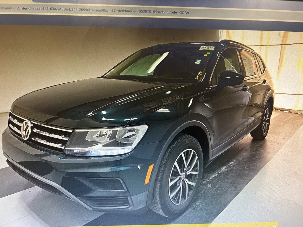This Tiguan is well equipped with Panoramic Sunroof Package, 3-Row Rubber Mats Kit (DISC), 3.33 Axle Ratio, 3rd row seats: bench, 4-Wheel Disc Brakes, 4-Wheel Independent Suspension, 6 Speakers, ABS brakes, Air Conditioning, Alloy wheels, AM/FM radio: SiriusXM, Automatic temperature control, Brake assist, Bumperdillo Protection Plate for Rear Bumper, Bumpers: body-color, Compass, Delay-off headlights, Driver door bin, Driver vanity mirror, Dual front impact airbags, Dual front side impact airbags, Electronic Stability Control, Exterior Parking Camera Rear, Forward collision: FCW w/Autonomous Emergency Braking mitigation, Four wheel independent suspension, Front anti-roll bar, Front Bucket Seats, Front Center Armrest, Front dual zone A/C, Front reading lights, Fully automatic headlights, Heated door mirrors, Heated Front Comfort Seats, Heated front seats, Heavy Duty Trunk Liner w/VW CarGo Blocks, Illuminated entry, Leather Shift Knob, Low tire pressure warning, Occupant sensing airbag, Outside temperature display, Overhead airbag, Overhead console, Panic alarm, Passenger door bin, Passenger vanity mirror, Perforated V-Tex Leatherette Seating Surfaces, Power door mirrors, Power driver seat, Power steering, Power windows, Radio data system, Radio: Composition Media AM/FM/HD, Rear anti-roll bar, Rear reading lights, Rear seat center armrest, Rear window defroster, Rear window wiper, Remote CD player, Remote keyless entry, Roof rack: rails only, Security system, Speed control, Speed-sensing steering, Split folding rear seat, Spoiler, Steering wheel mounted audio controls, Tachometer, Telescoping steering wheel, Tilt steering wheel, Traction control, Trip computer, Turn signal indicator mirrors, Variably intermittent wipers, and Wheels: 17" Wide Multi-Spoke 2-Tone Alloy.